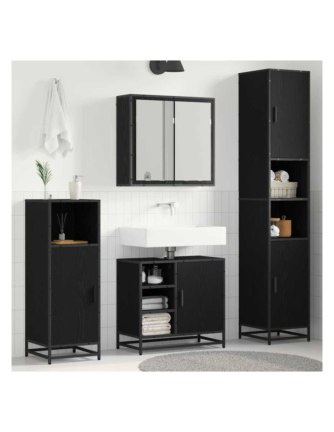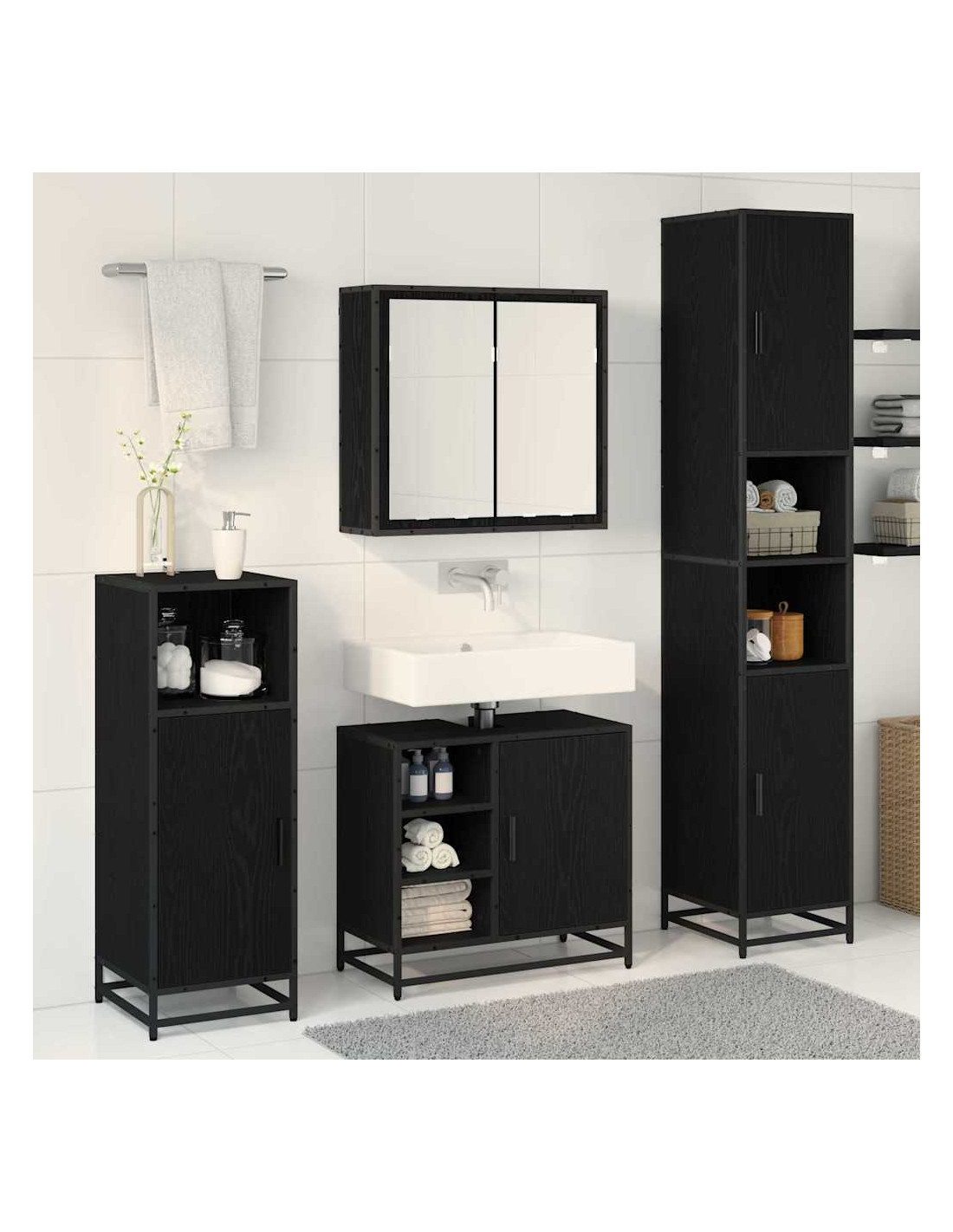 - Costruzione in Legno Ingegnerizzato Questo set usa legno ingegnerizzato resistente e di qualità. Ha una finitura liscia facile da pulire e resiste all'umidità tipica dei bagni, garantendo durata nel tempo.