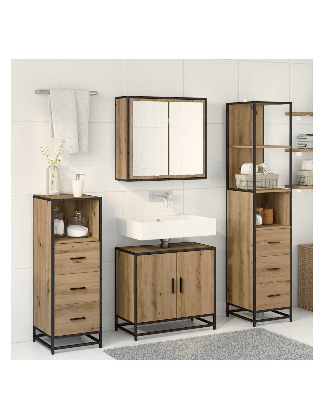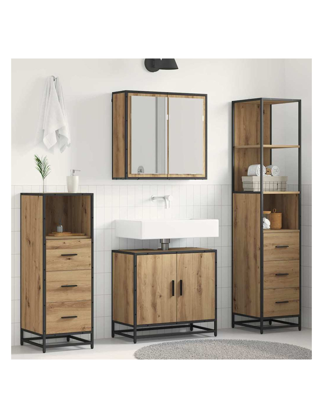 - Caratteristiche / Funzioni / Design: Approfitta di uno stoccaggio efficiente con cassetti e vani scorrevoli per tenere tutto in ordine. Lo stile a parete aggiunge un tocco elegante al tuo bagno. Le maniglie in ferro nero hanno un look moderno e sono comode da utilizzare ogni giorno.