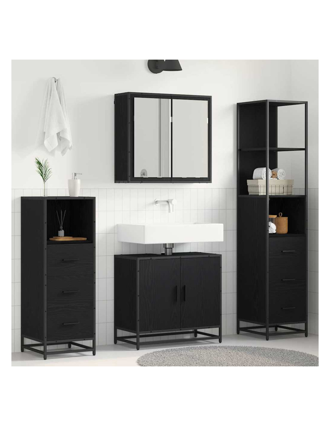 - Caratteristiche / Funzioni / Design: Approfitta di uno stoccaggio efficiente con cassetti e vani scorrevoli per tenere tutto in ordine. Lo stile a parete aggiunge un tocco elegante al tuo bagno. Le maniglie in ferro nero hanno un look moderno e sono comode da utilizzare ogni giorno.