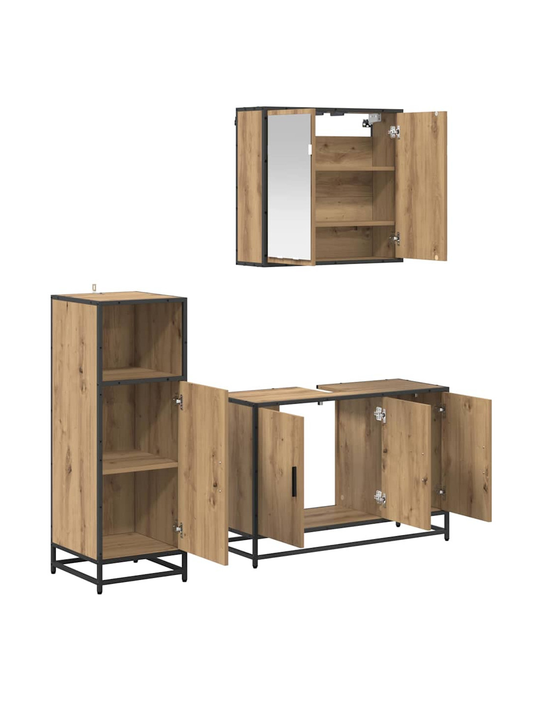 - Componenti del Set Completo: Il set include un armadietto per specchio, un armadietto per lavabo e un altro armadietto, tutti pensati per essere facili da usare. Ogni parte ha un ruolo specifico, offrendoti spazio sufficiente per i tuoi oggetti quotidiani, prodotti per la toilette e decorazioni. Avere tutto il necessario in un unico set rende super semplice organizzare il tuo bagno.