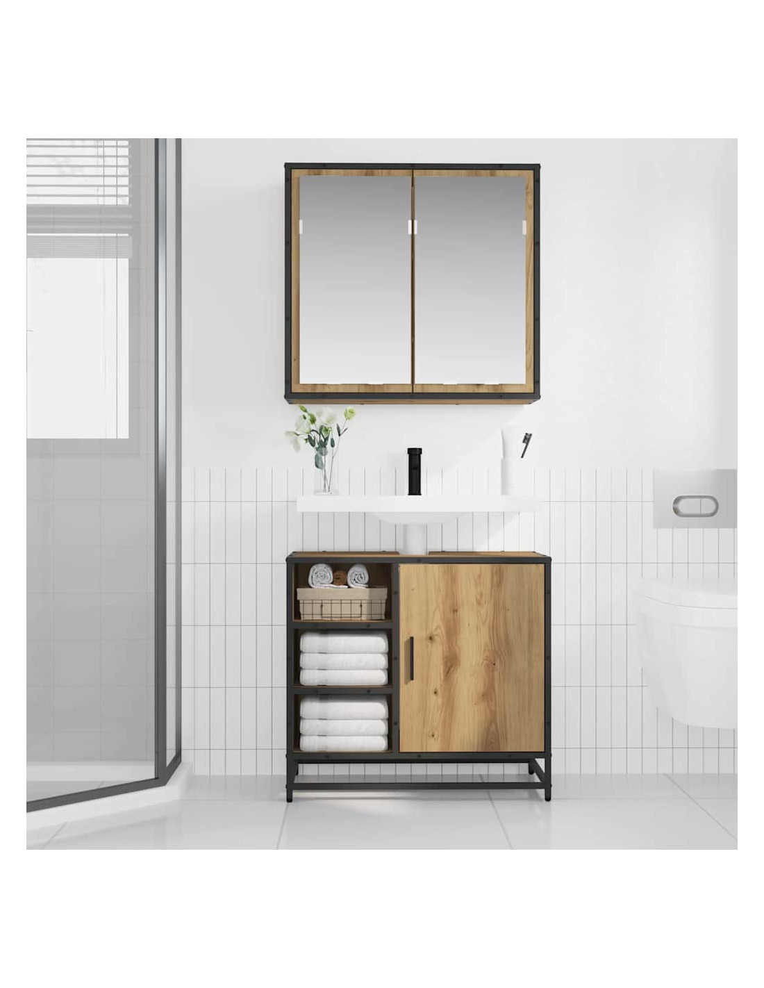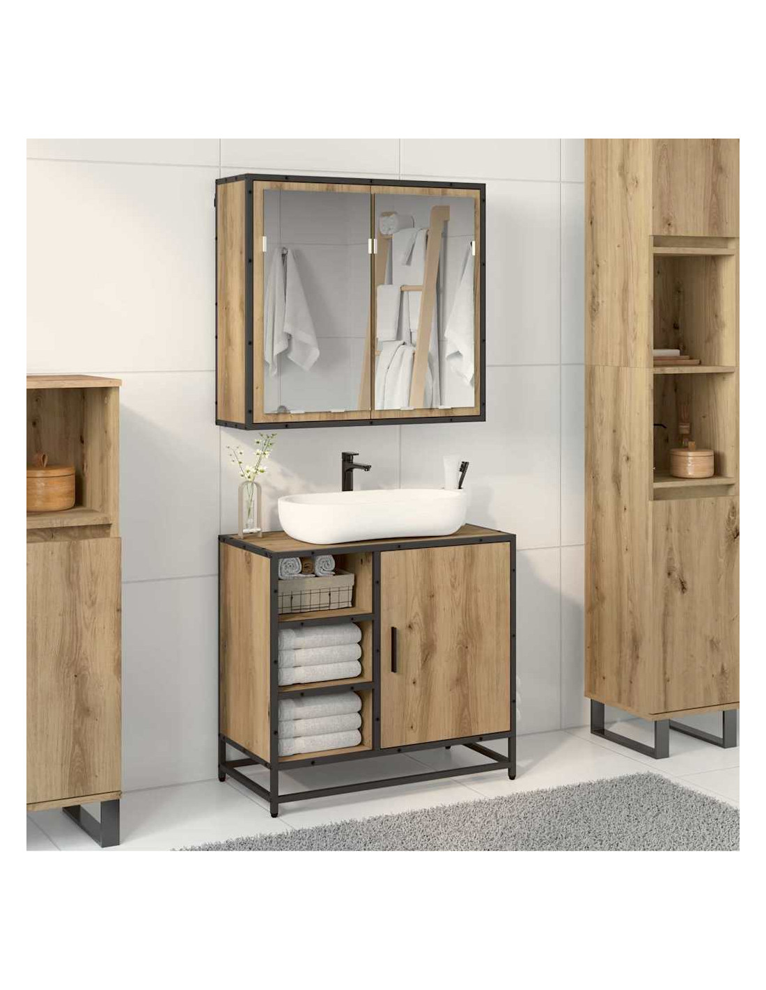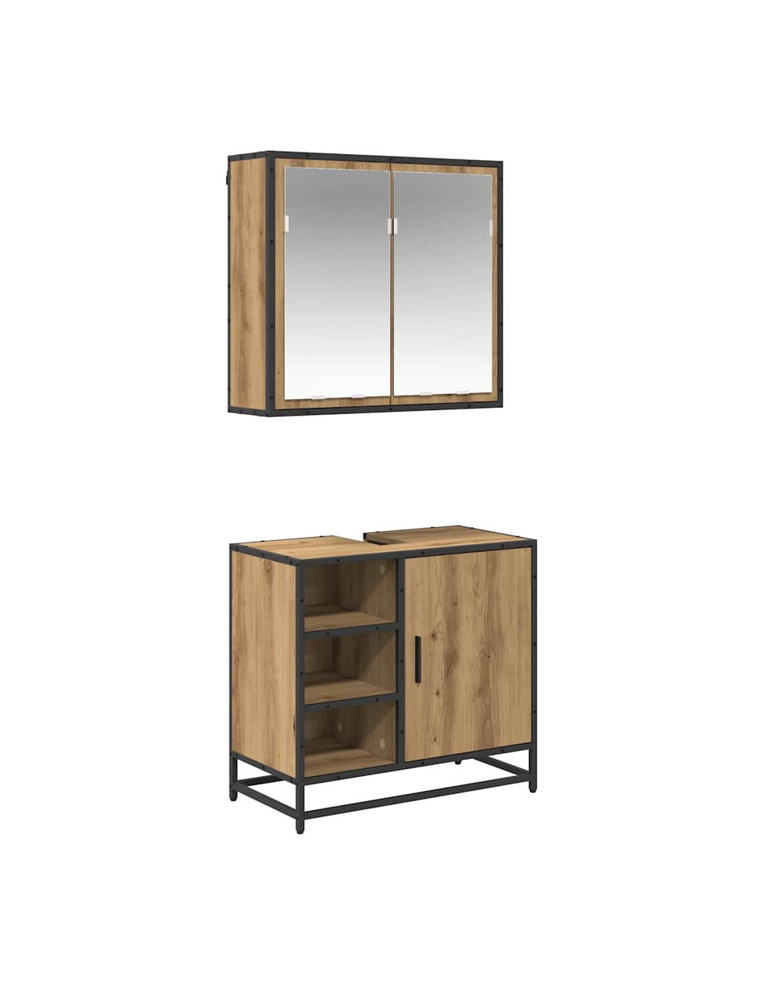 - Materiale: Realizzato in legno ingegnerizzato robusto e metallo, questo set è progettato per durare. È resistente all'umidità, il che lo rende adatto per i bagni, combinando praticità e un tocco moderno.