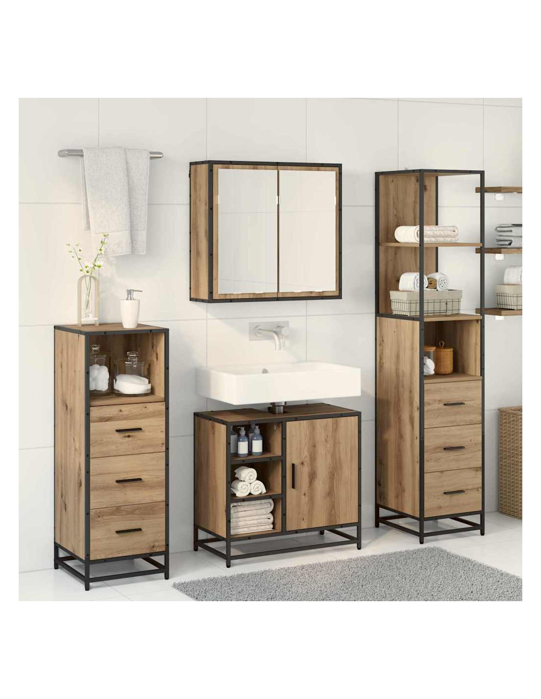 Questo set di mobili da bagno in legno è pensato per migliorare sia l'estetica che la praticità di qualsiasi bagno. Ha un look moderno con linee semplici e poco ingombro. Include tutto il necessario per trasformare il tuo spazio in un ambiente ordinato e accattivante. I colori neutri si adattano a vari stili di arredamento, rendendolo una scelta ideale per chiunque voglia un look unificato.