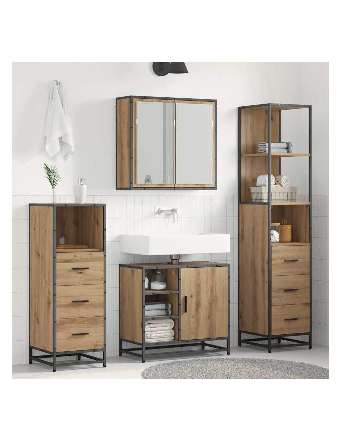Questo set di mobili per il bagno in legno è un ottimo connubio di design moderno e praticità, ideale per sistemare il tuo spazio di stoccaggio. Con la sua forma rettangolare intelligente e un'atmosfera minimalista, si integra facilmente in un look contemporaneo offrendo allo stesso tempo stoccaggio utile. Realizzato in legno ingegnerizzato e metallo, questo set è progettato per resistere all'uso quotidiano senza perdere bellezza: decisamente una scelta collaudata per qualsiasi bagno.