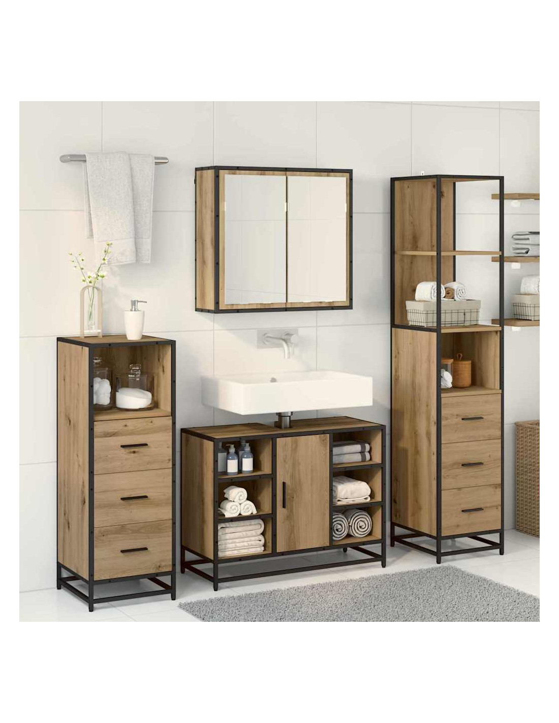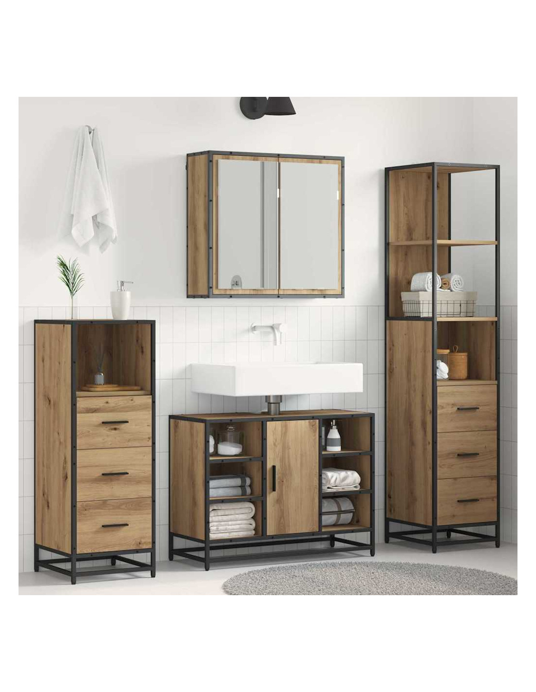 - Superficie in Legno Ingegnerizzato: Questo set di mobili da bagno ha una superficie in legno ingegnerizzato resistente, che è bella da vedere e resistente per l'uso quotidiano. Mantiene la sua forma nel tempo e aggiunge un tocco di classe al tuo bagno.