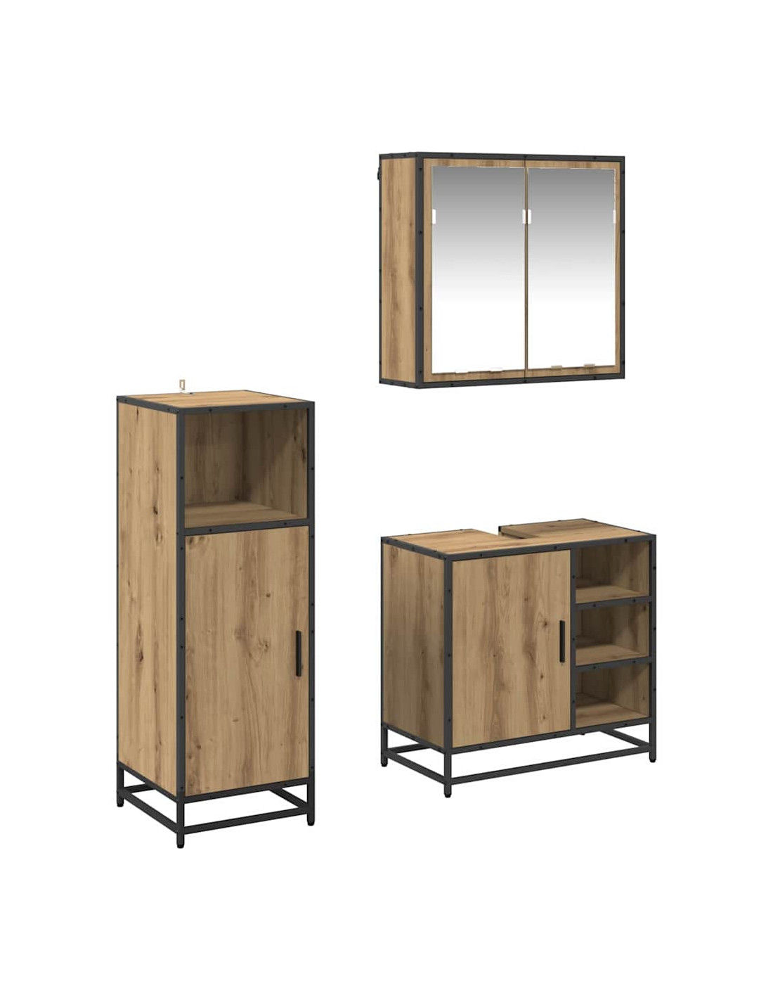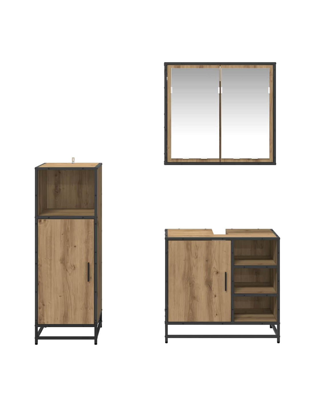 - Componenti Inclusi: Il set include tre pezzi principali: un armadietto a specchio, un armadietto per lavabo e un altro armadietto per ulteriore spazio di stoccaggio. Ogni pezzo ha una funzione, dall'aiuto nella cura personale al contenere tutto il necessario per il bagno.