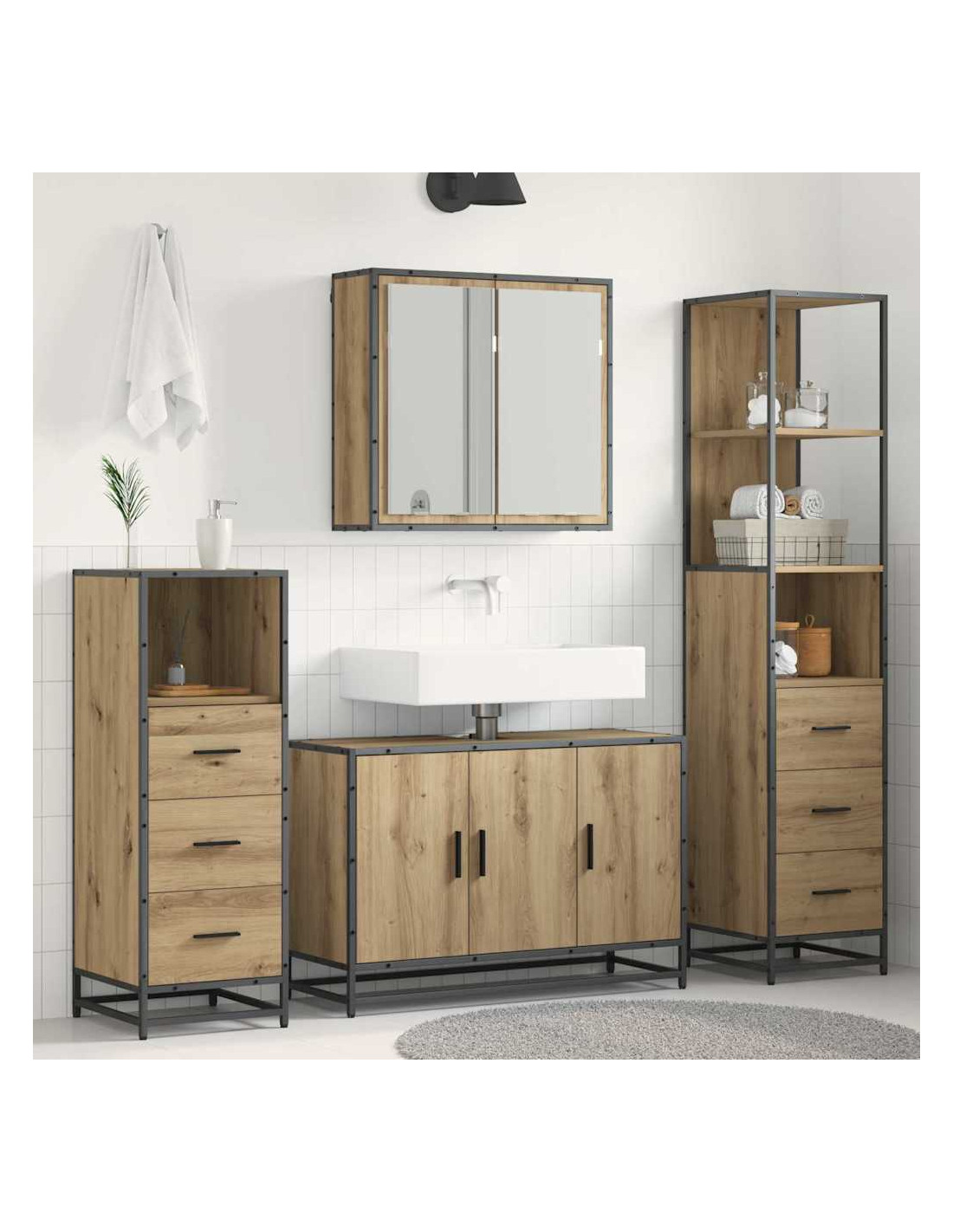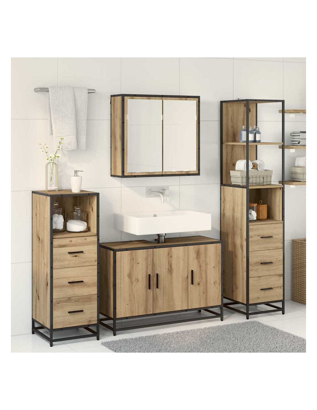 - Struttura in legno ingegnerizzato: Realizzato in legno ingegnerizzato di alta qualità, questo set è robusto e resiste all'umidità, perfetto per il bagno. Il materiale resistente offre una base solida con una finitura elegante, integrandosi perfettamente nel tuo bagno contemporaneo.