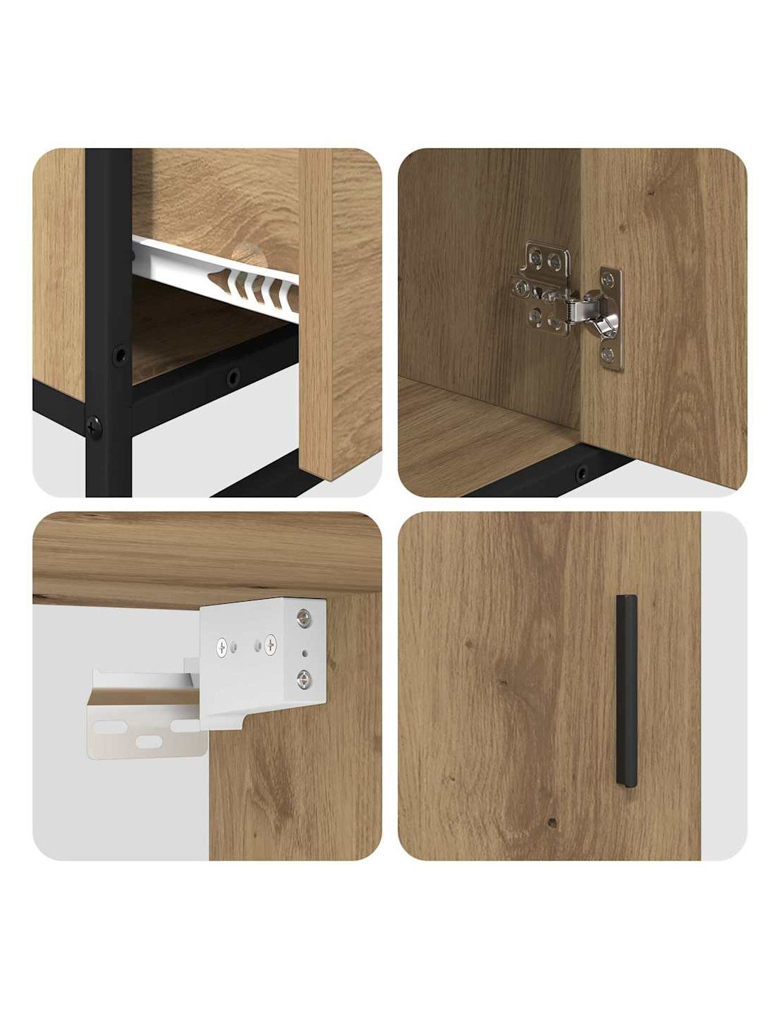 - Maniglie moderne - Con maniglie a barra in ferro nero, questo mobile è stylish. Fanno un bel contrasto e sono progettate per durare e per essere comode da usare, si adattano bene all'atmosfera moderna del set.