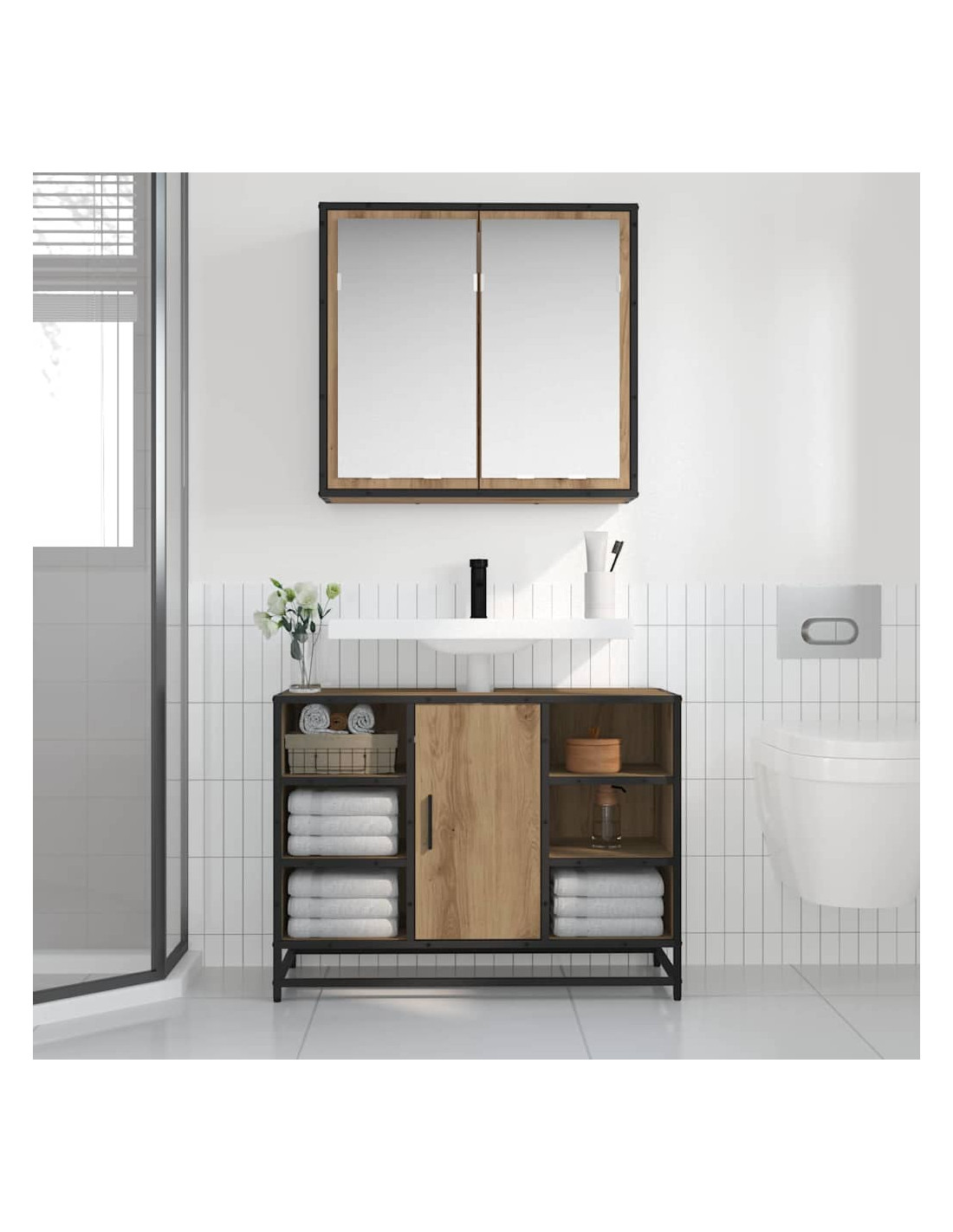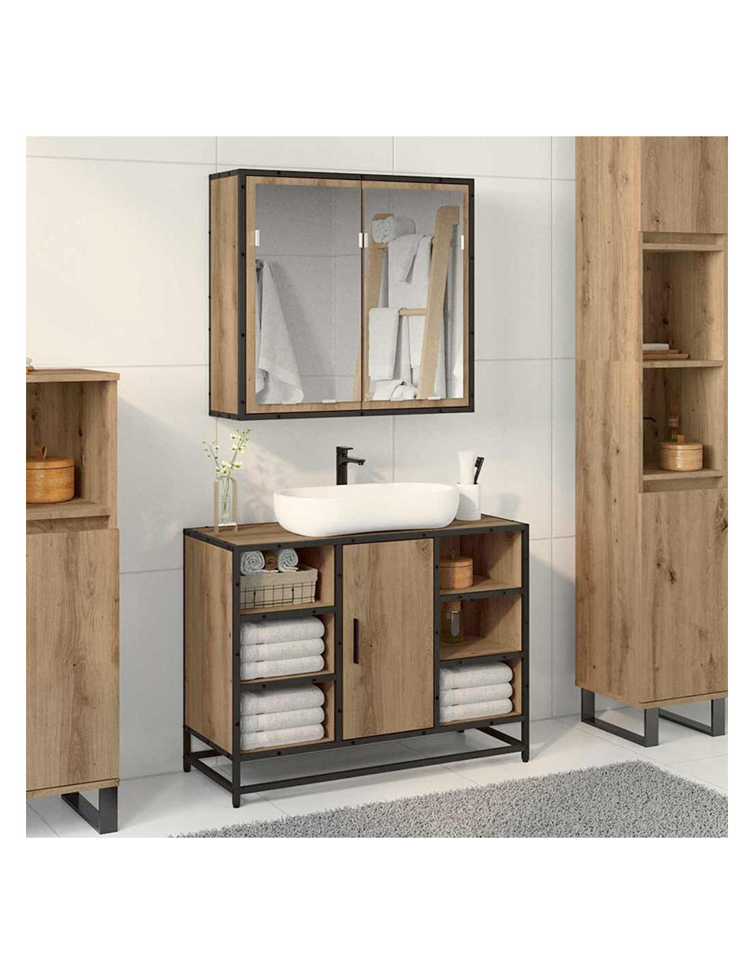 Questo set di mobili per il bagno in legno rappresenta il meglio dell'eleganza moderna e ottimizza lo spazio per il tuo bagno. Con un design semplice e lineare, unisce legno ingegnerizzato e metallo, offrendo un aspetto contemporaneo e funzionale che si sposa bene con molti stili di arredamento. Il design minimalista con forma rettangolare fornisce una soluzione pratica per chi cerca stile e funzionalità senza rinunciare all'estetica.