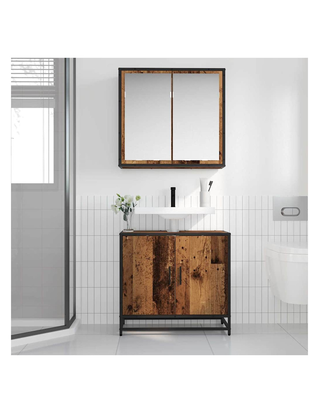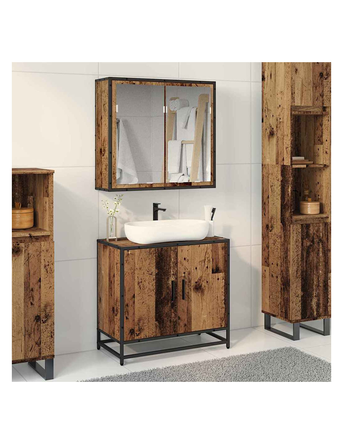 - Legno Ingegnerizzato e Metallo: Questo set di mobili da bagno è fatto di legno ingegnerizzato resistente, creato per durare e avere un bell'aspetto. Con parti in metallo per maggiore durata, il set è un perfetto equilibrio tra stile e praticità. Questi materiali lo rendono facile da mantenere, assicurando che duri a lungo.