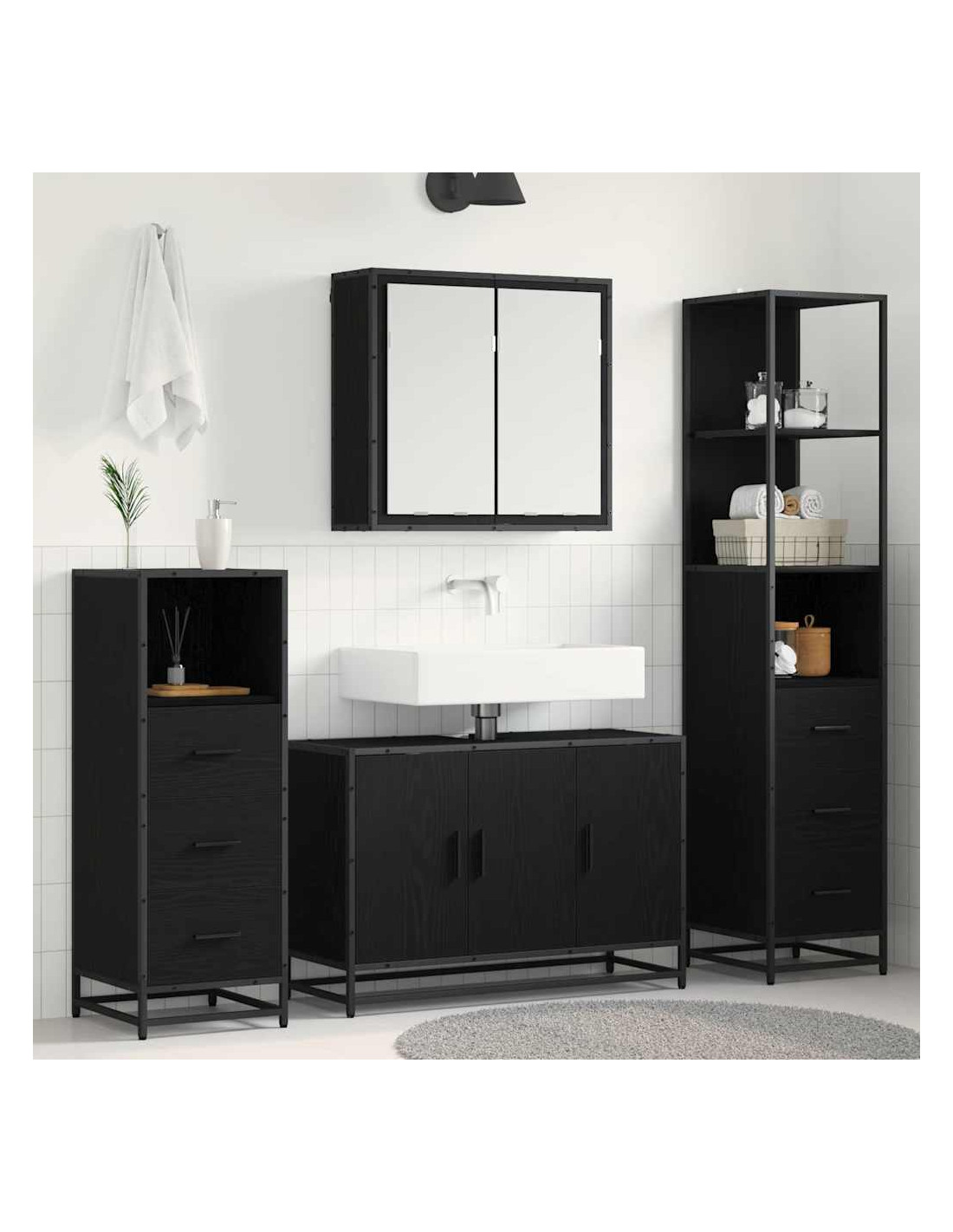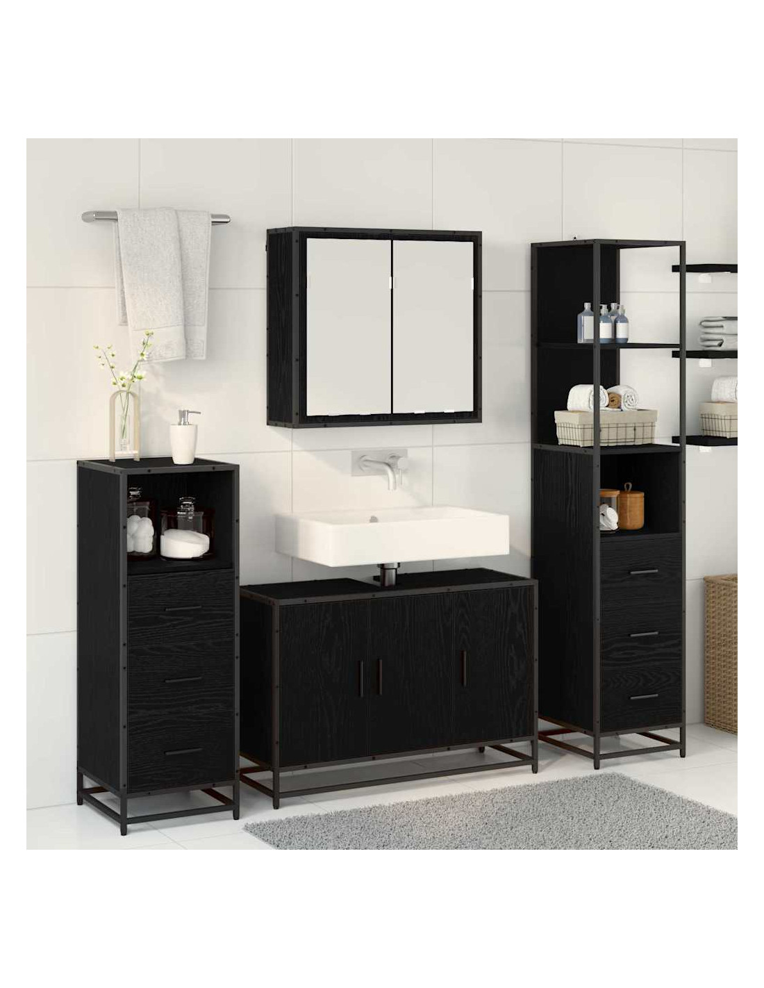 - Materiali Moderni: Il set da bagno è fatto di legno ingegnerizzato e metallo, combinando robustezza e look elegante. Questi materiali assicurano durata nel tempo, perfetti per l'uso quotidiano nel tuo bagno. La finitura curata dà al set un aspetto lucido e migliora l'estetica della tua casa.