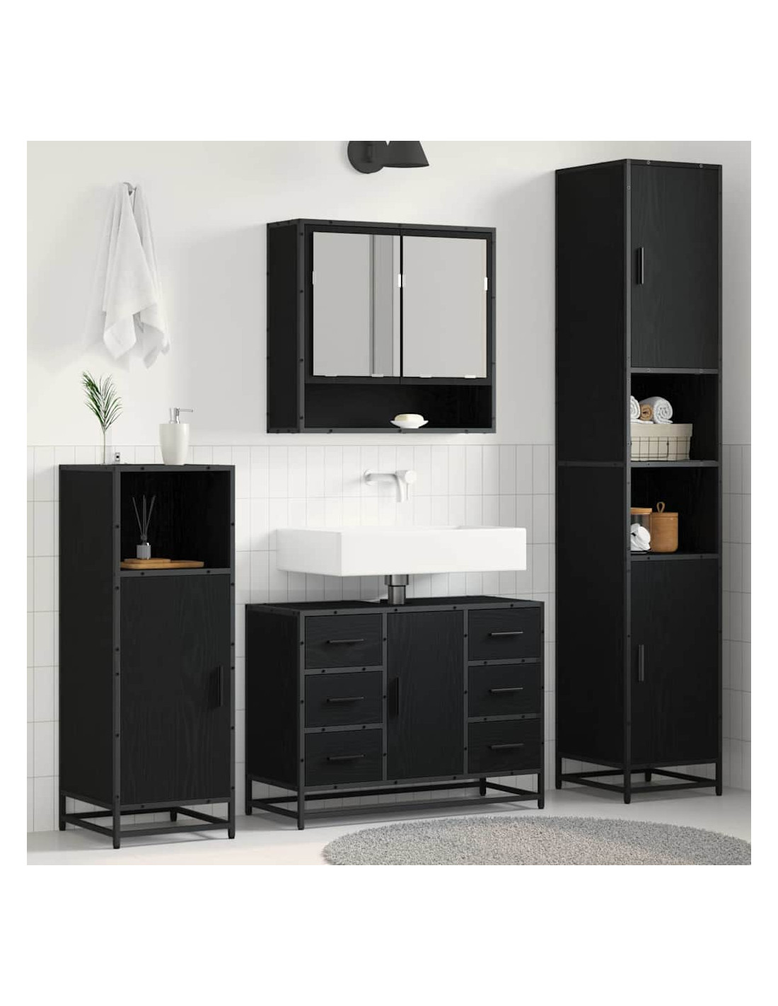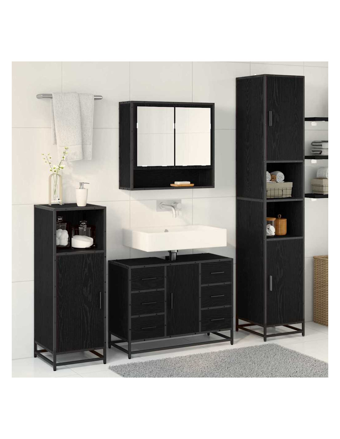 - Design: Il design a gamba quadrata migliora la stabilità, mentre le maniglie in acciaio nero creano un bel contrasto con il legno ingegnerizzato, contribuendo a un aspetto moderno e minimalista. La cornice nera si abbina bene con altri arredi, creando un look uniforme nel bagno.