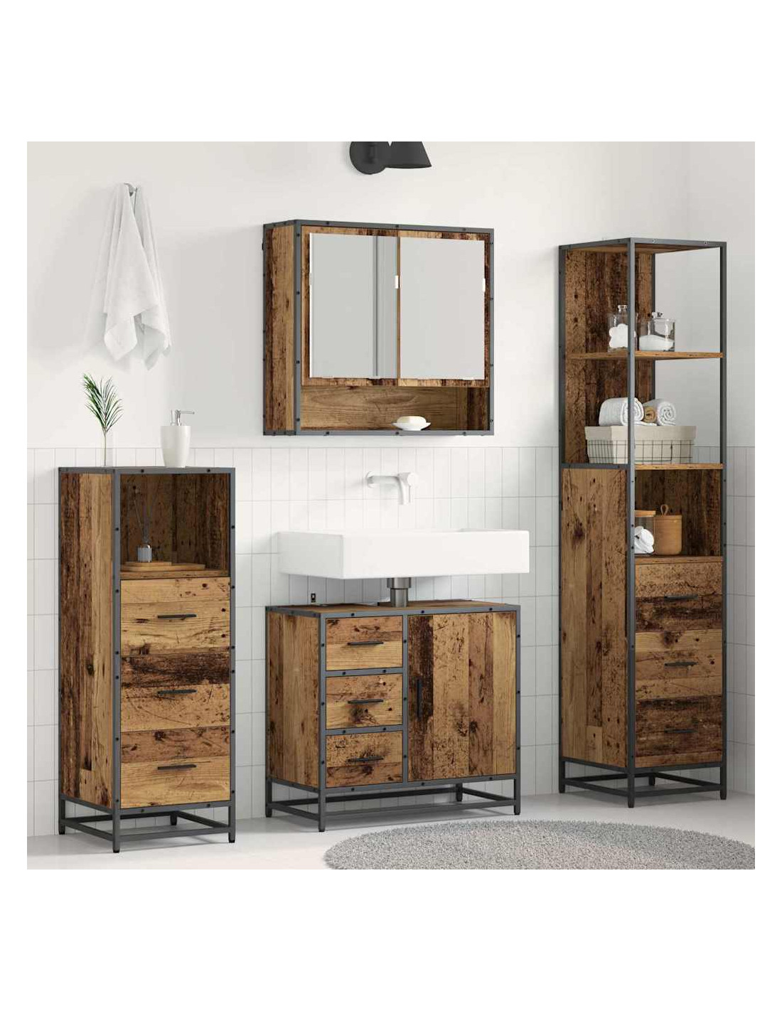 Questo elegante set di mobili per il bagno, fatto di legno ingegnerizzato e metallo, porta un tocco moderno e pratico al tuo spazio. Le sue linee nette e il look contemporaneo si integrano facilmente in qualsiasi interno, rivitalizzando il tuo bagno con un'atmosfera di classe. È ideale per chi cerca utilità e un design carino, offrendo tanto spazio per riporre le cose.