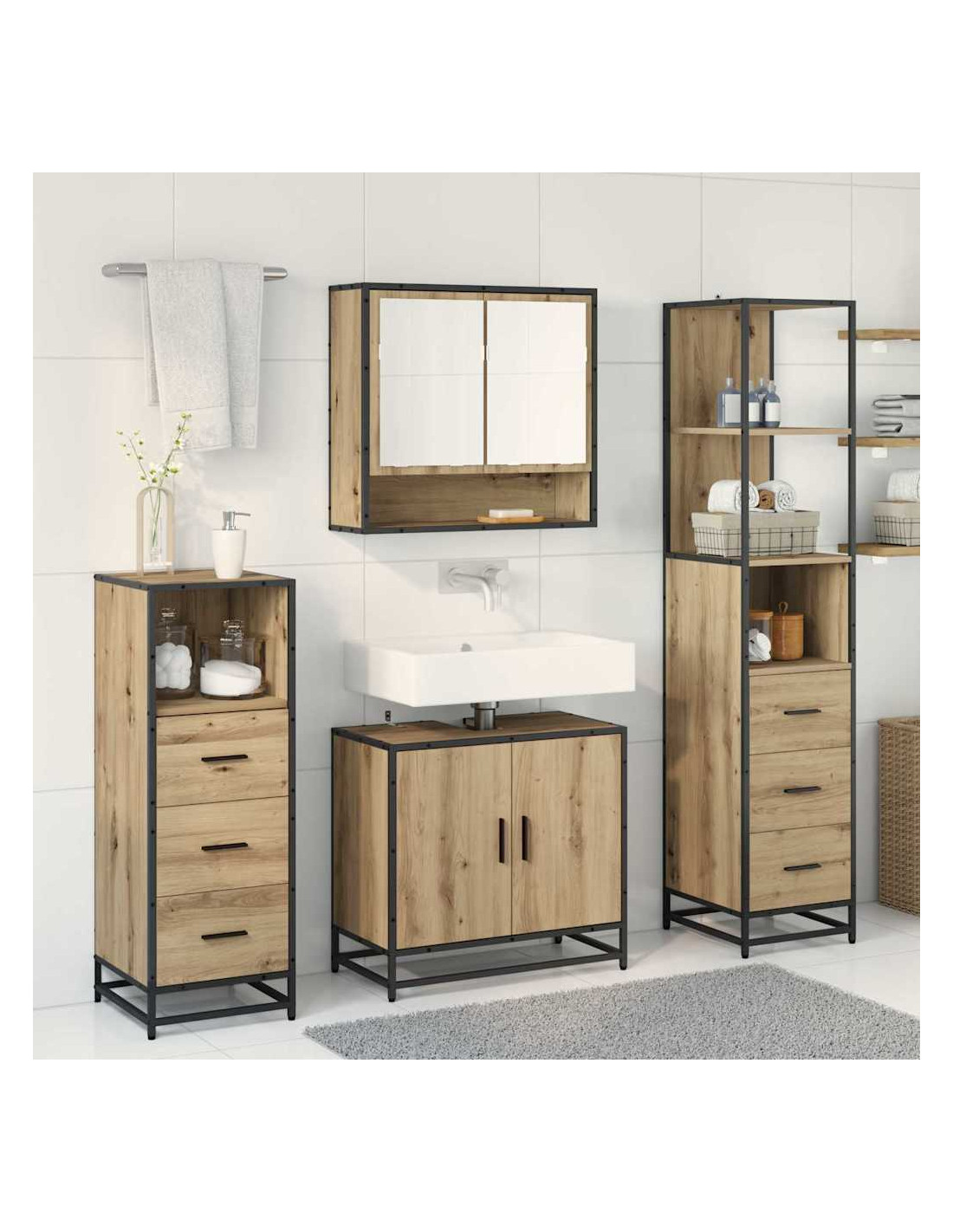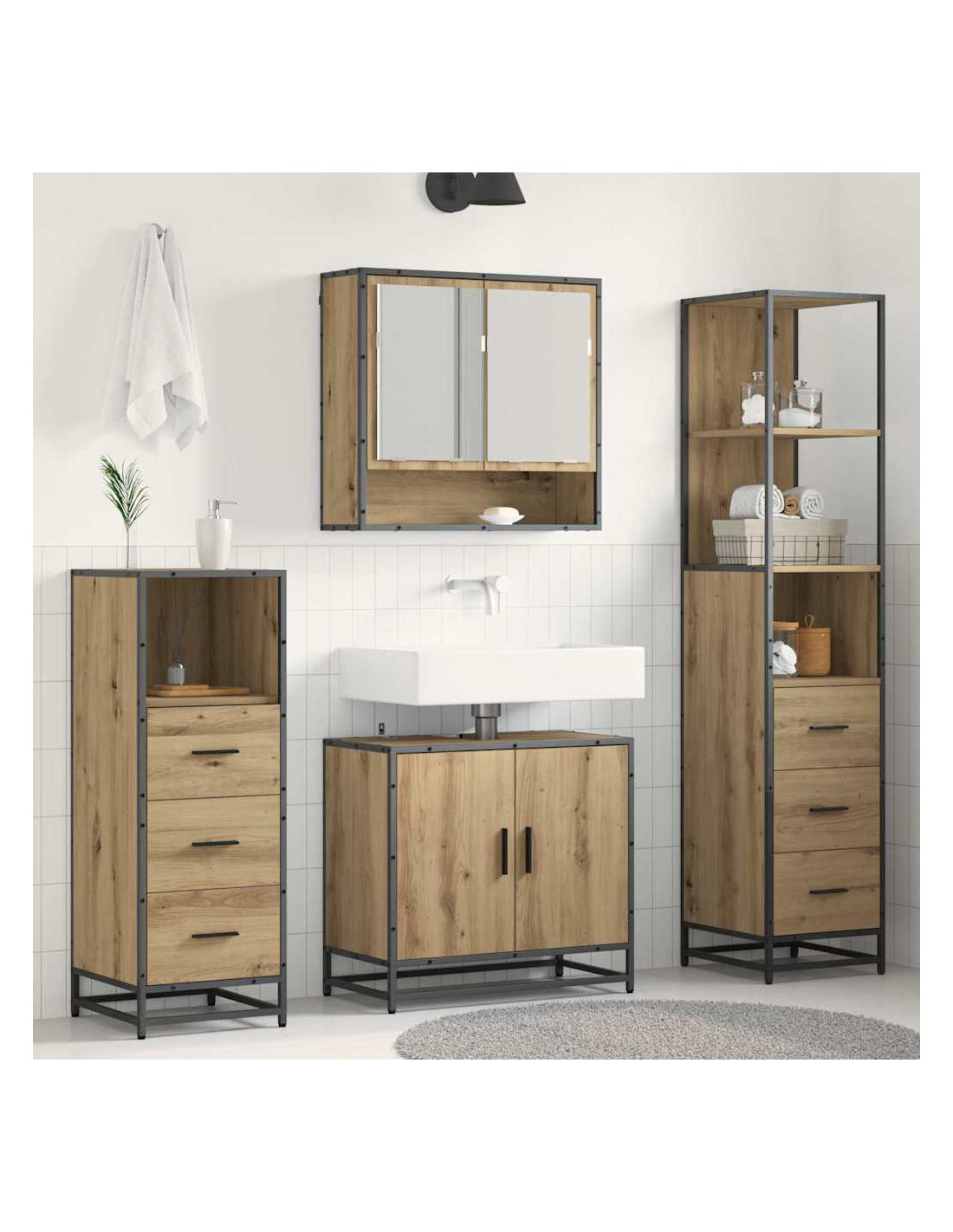 - Materiali di Qualità Fatto in legno ingegnerizzato, questo set è resistente e ha un look chic e moderno. La robusta struttura in metallo dona ulteriore solidità, apprezzata da chi ama il contemporaneo. Questi materiali lavorano insieme per garantire buone prestazioni e una finitura stilosa e minimalista che ravviva ogni bagno.