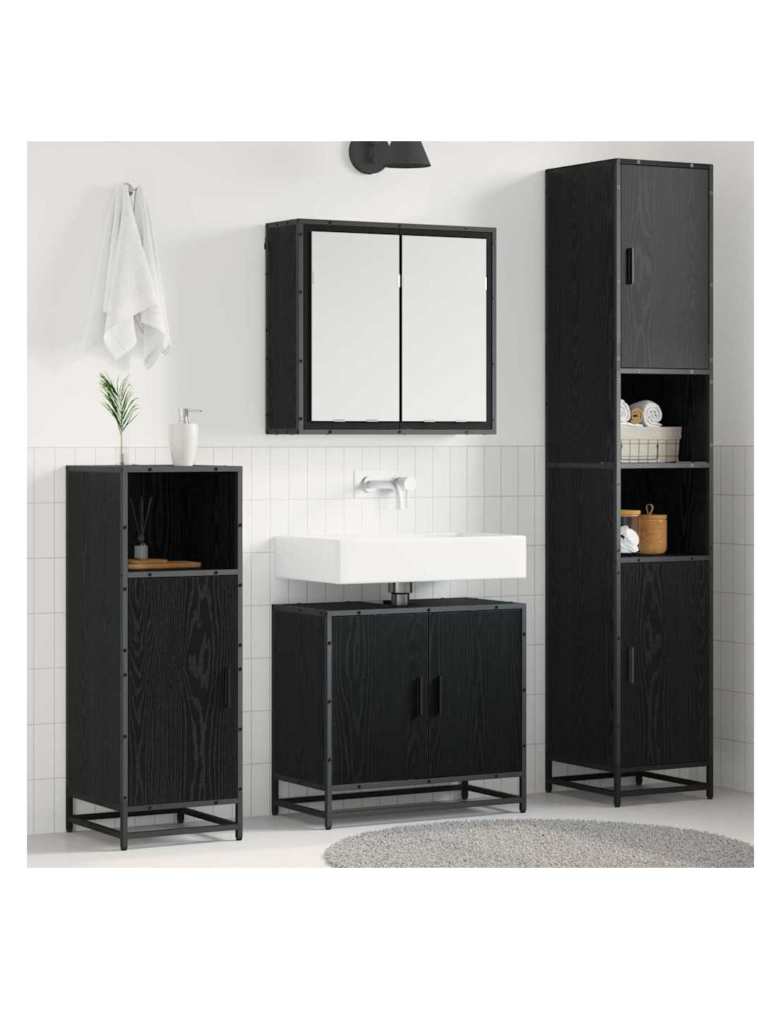 Il Set di Mobili da Bagno in Legno trasforma facilmente qualsiasi bagno moderno con il suo design semplice e pratico. Realizzato in legno ingegnerizzato e metallo di alta qualità, questo set unisce stile e funzionalità, creando una fusione perfetta di forma e utilità. Ideale per chi cerca un'atmosfera contemporanea, questo set porta un tocco elegante sia nei bagni piccoli che in quelli più grandi. Il suo design lineare e le tonalità scure aggiungono un'eleganza senza tempo, adatta a diversi stili d'interni, per chi ama soluzioni semplici e ordinate.