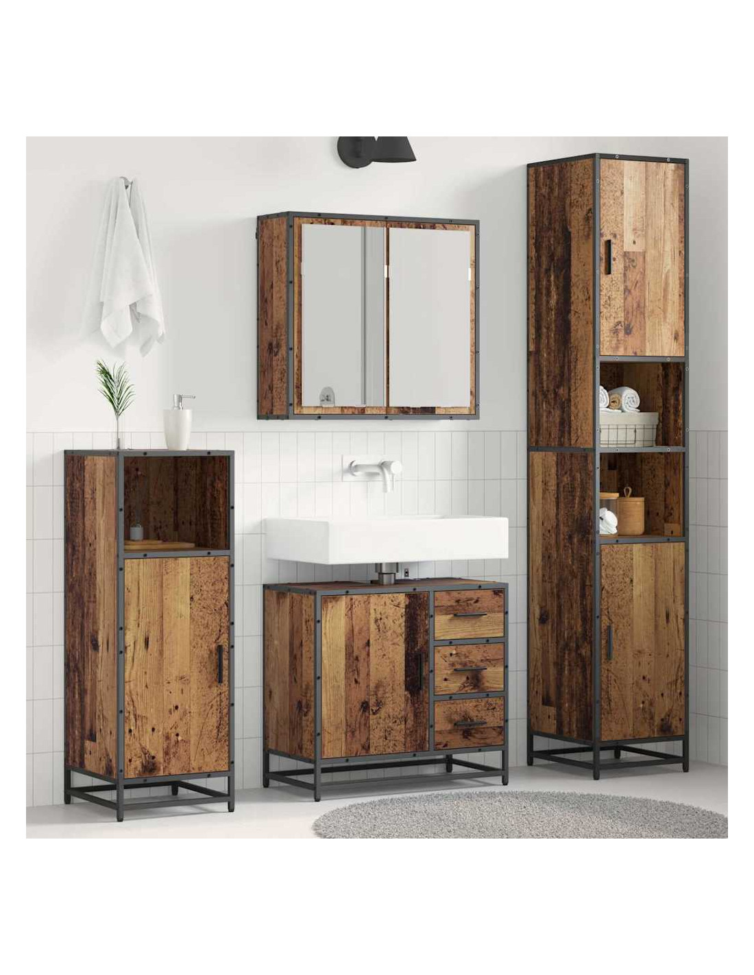 Questo set di mobili per il bagno in legno è una soluzione ben fatta per rendere il tuo bagno più ordinato e bello. Con un design moderno e linee pulite, offre funzionalità con stile. Include i pezzi essenziali: un armadietto con specchio, un lavabo e un armadietto extra, tutti progettati per un look coeso e ampio spazio di stoccaggio per i tuoi oggetti quotidiani. Le eleganti parti in metallo nero si abbinano bene con le superfici in legno ingegnerizzato, migliorando l'appeal visivo. Perfetto per bagni moderni e minimalisti, questo set si integra bene in vari stili, aiutandoti a mantenere un ambiente ordinato.