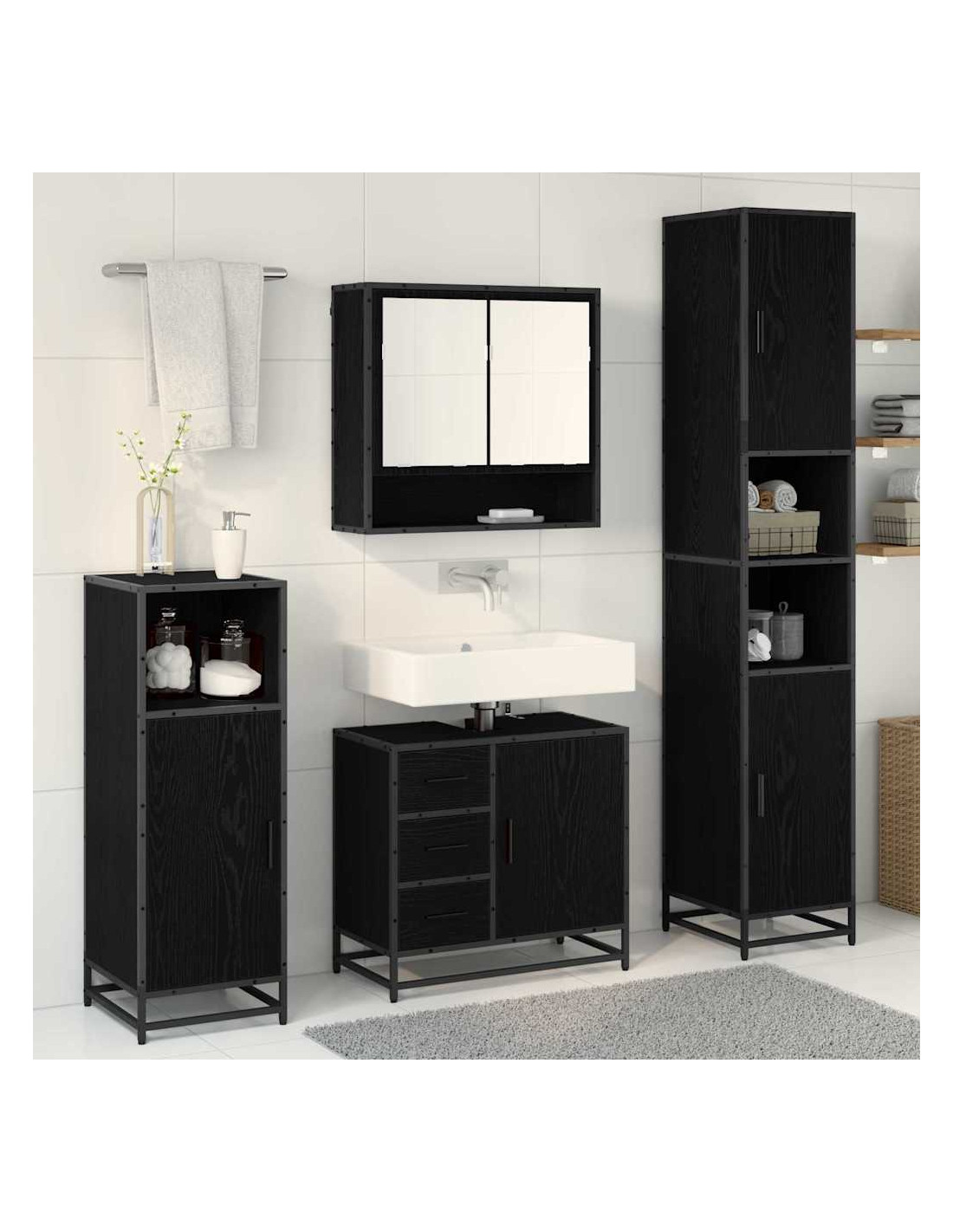 - Materiali: Il materiale principale di questo set è legno ingegnerizzato di qualità, accompagnato da una robusta struttura in metallo. Questa combinazione garantisce una costruzione solida e ne assicura la durata. Il legno ingegnerizzato resiste bene all'umidità tipica dei bagni, mentre il metallo offre ulteriore stabilità.