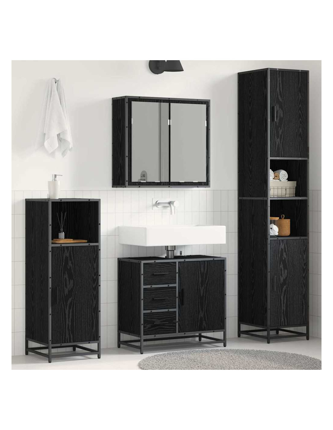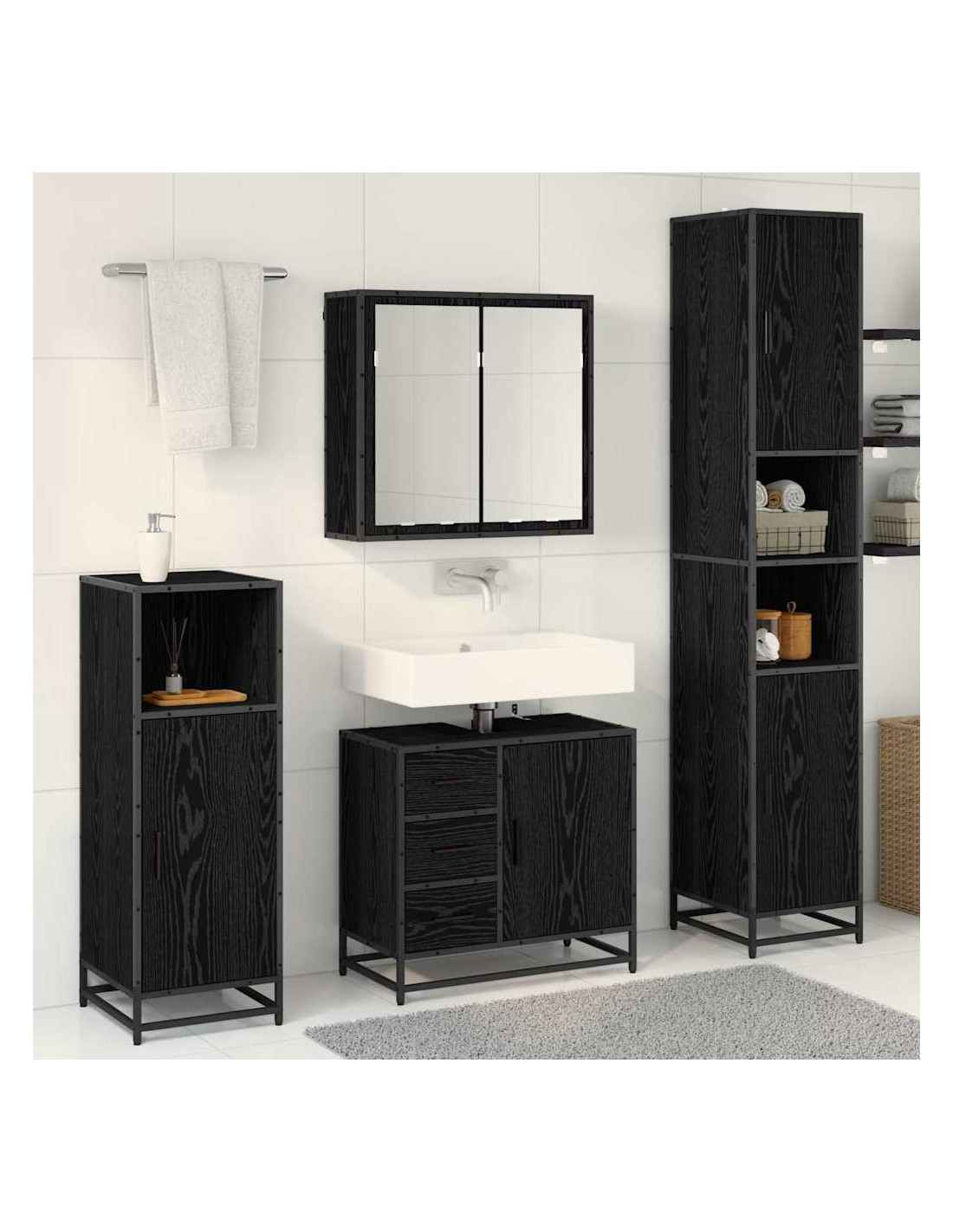 Questo Set di Mobili da Bagno in Legno ha un design moderno che si adatta benissimo a qualsiasi bagno contemporaneo. Include un armadietto a parete, un armadietto per il lavabo e due armadietti, rendendo super facile e stiloso riporre i tuoi oggetti del bagno.