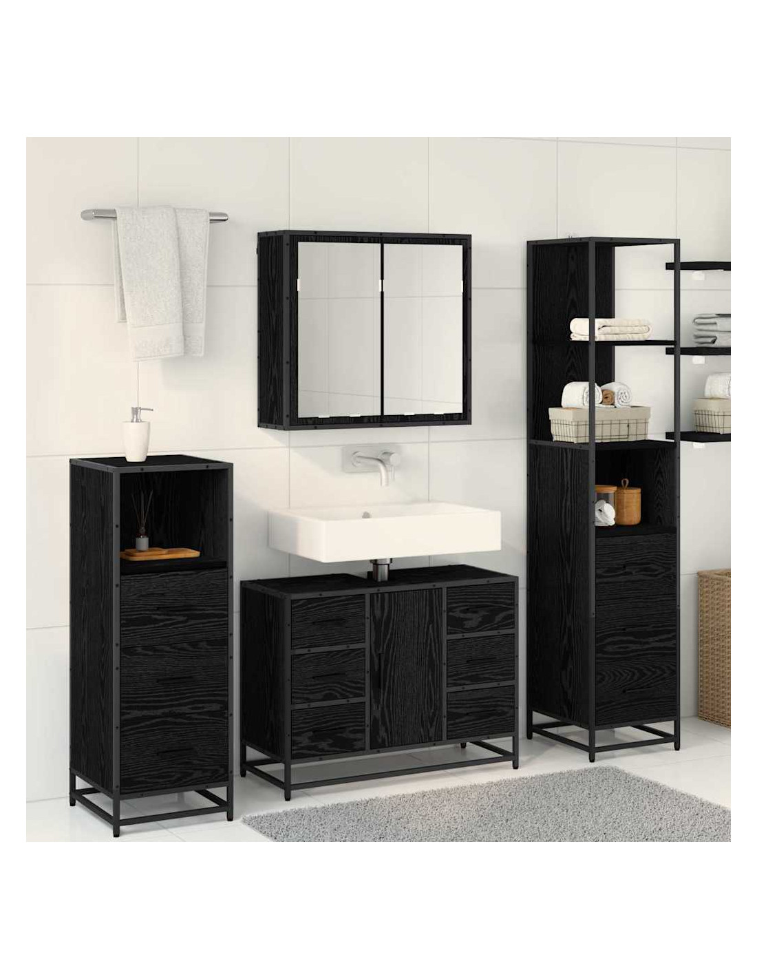 - Materiali Resistenti: Questo set è fatto in legno ingegnerizzato con un bel telaio in metallo, pensato per essere robusto e duraturo. I materiali sono scelti per la loro long-lasting, con una superficie liscia facile da pulire. Il legno ingegnerizzato dà un tocco raffinato che si adatta a diversi stili di bagno.