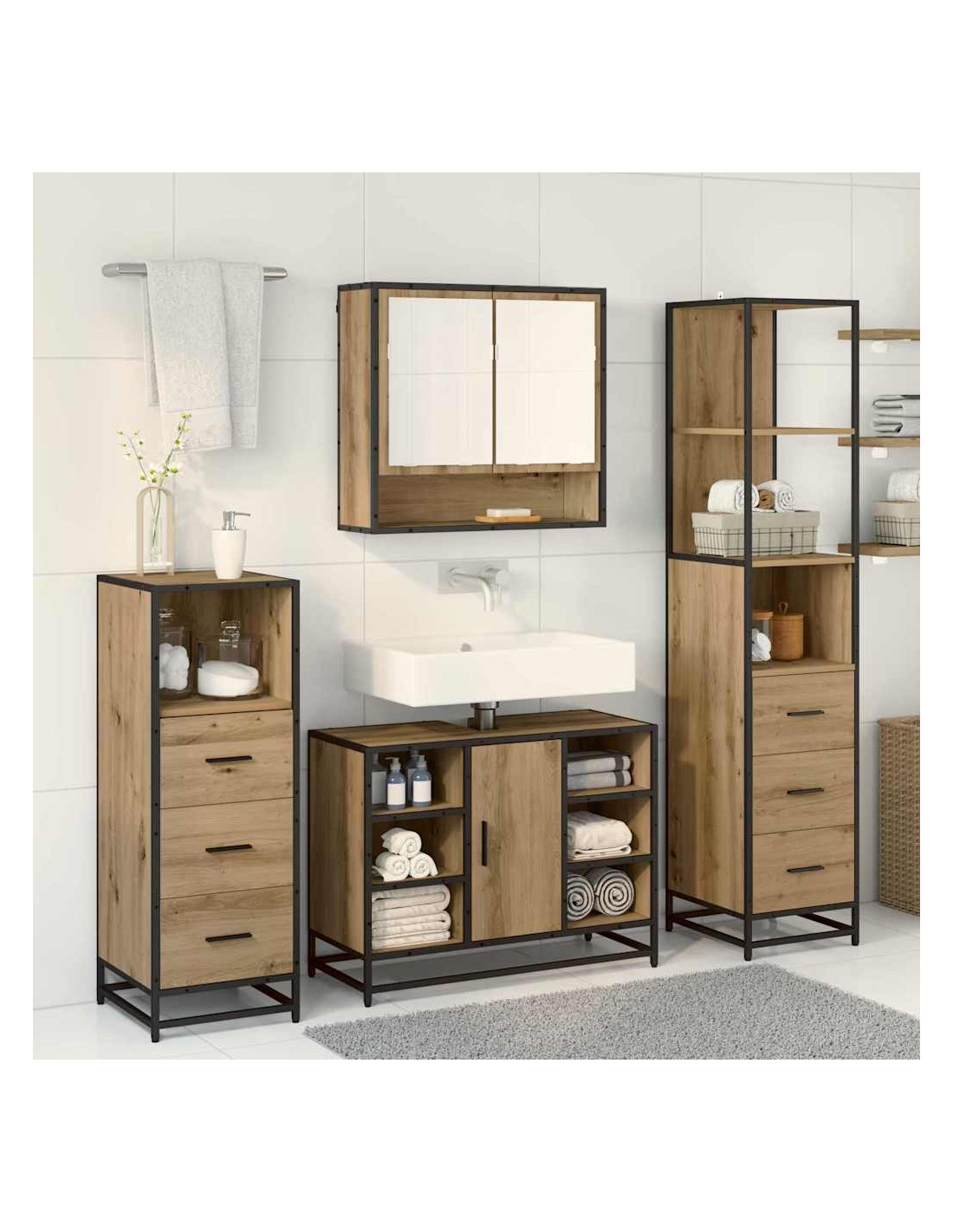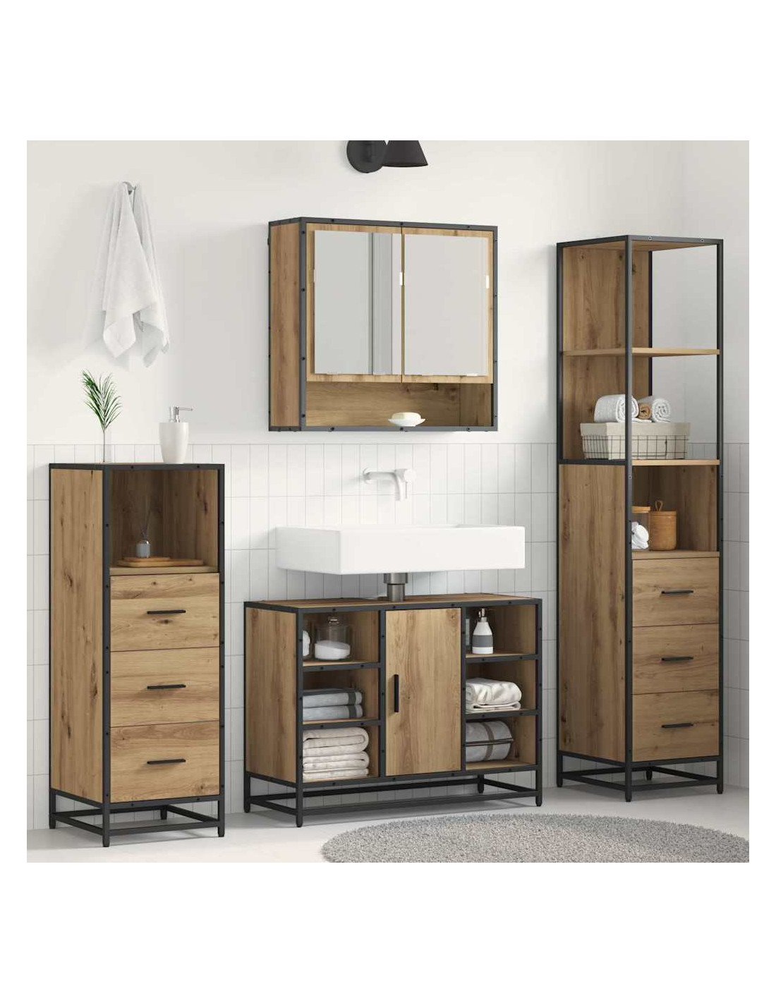 Il Set di Mobili da Bagno è un'aggiunta pratica e stilosa a ogni bagno moderno. Ha un design elegante, perfetto per dare una svolta a qualsiasi spazio. È pensato per offrire sia funzionalità che bellezza, con ampie soluzioni di archiviazione e legno ingegnerizzato resistente. La finitura opaca e la texture accattivante danno un tocco di eleganza, fondendosi bene con tanti stili di decorazione.