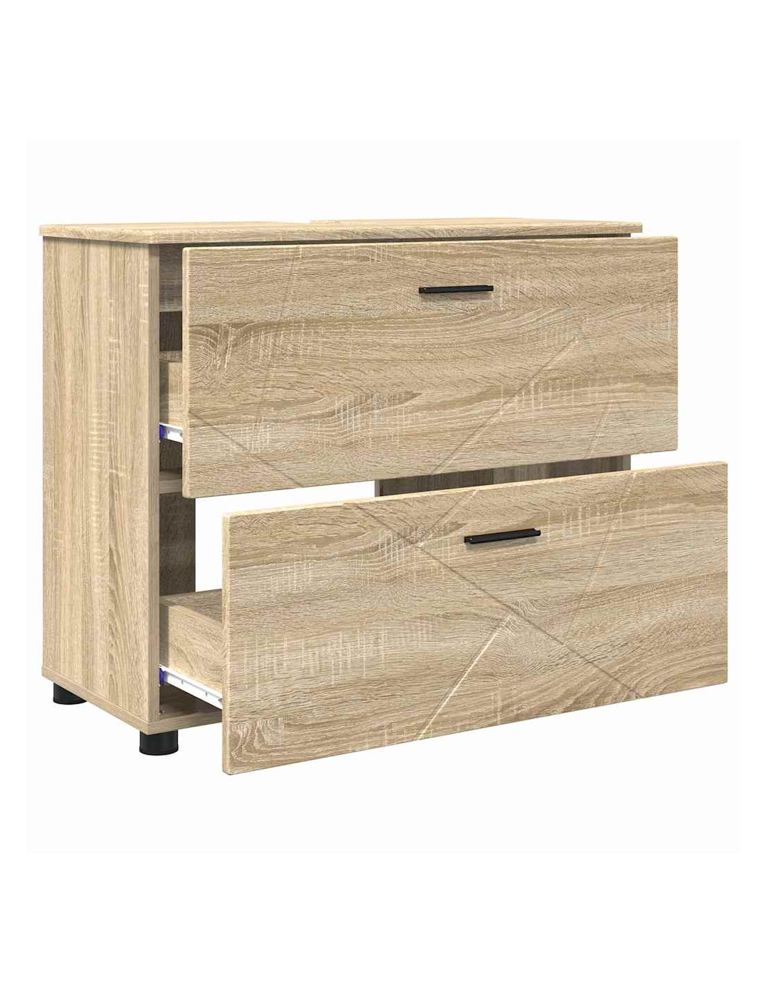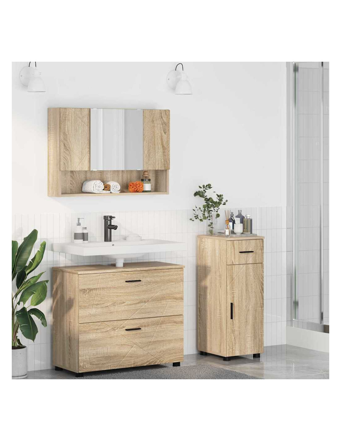 Questo set di mobili da bagno in legno ingegnerizzato riesce a unire design moderno, forme rettangolari minimaliste e linee ordinate. È fatto per rendere il tuo bagno più funzionale senza rinunciare all'aspetto contemporaneo, adattandosi facilmente a vari stili con un tocco di semplicità e classe. Il design elegante si combina con diversi decori, rendendo il set ideale sia per bagni piccoli che per quelli più lussuosi.