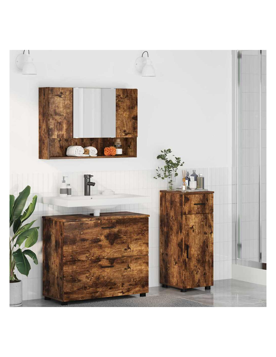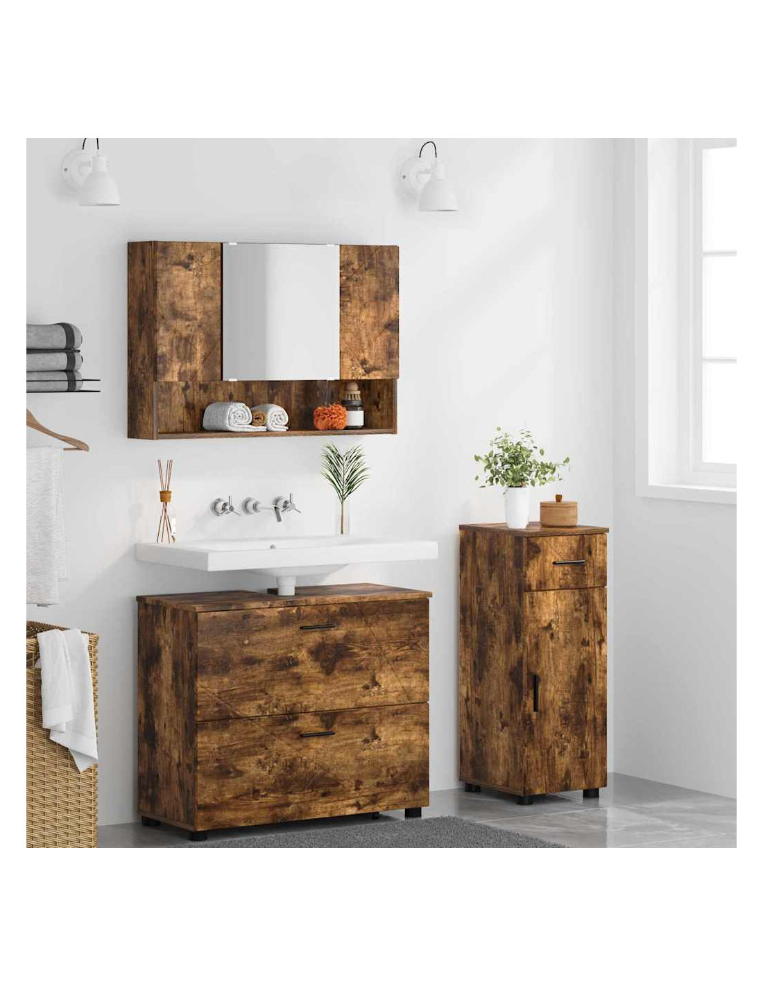 Questo set di mobili da bagno in legno ingegnerizzato riesce a unire design moderno, forme rettangolari minimaliste e linee ordinate. È fatto per rendere il tuo bagno più funzionale senza rinunciare all'aspetto contemporaneo, adattandosi facilmente a vari stili con un tocco di semplicità e classe. Il design elegante si combina con diversi decori, rendendo il set ideale sia per bagni piccoli che per quelli più lussuosi.