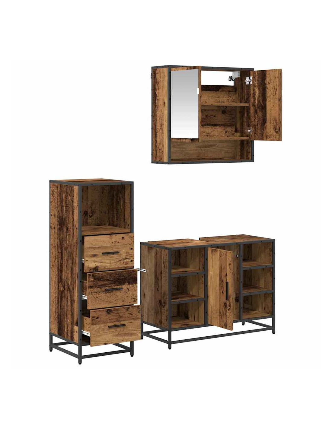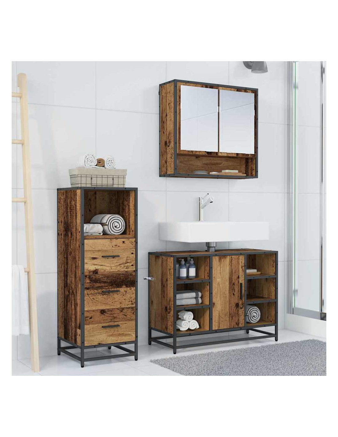 - Componenti Inclusi: Il pacchetto viene fornito con un armadietto a specchio, un armadietto lavandino e un armadietto extra per tenere le cose. Ogni pezzo è pensato per dare tanto spazio di stoccaggio senza perdere di vista l'estetica. L'armadietto a specchio migliora la funzionalità e ti offre riflessi chiari per le tue esigenze di bellezza quotidiana.