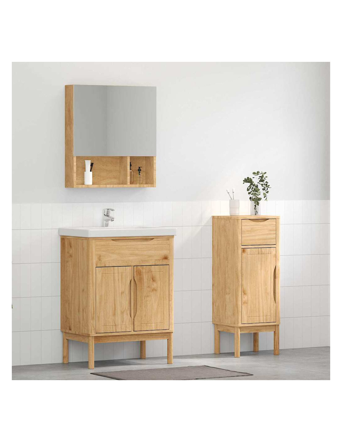 - Costruzione in pino massello Questo set di mobili per bagno è realizzato in legno massello di pino, un mix perfetto di resistenza e bellezza. Ogni dettaglio è curato per garantirne la robustezza. La venatura naturale del legno aggiunge un tocco di stile al tuo bagno.