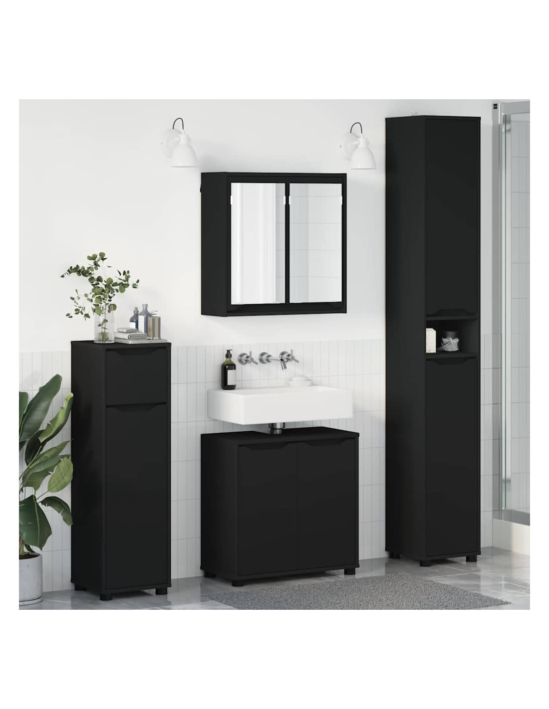 Questo set di mobili da bagno moderno ha un design elegante e minimalista, perfetto per case contemporanee. Con misure di 30.5 x 30 x 195 cm, si adatta a ogni spazio bagno, offrendo un'esperienza sia bella che pratica. È perfetto per chi ha bisogno di soluzioni di archiviazione con un mobile lavabo, un mobile specchio e due armadietti di varie dimensioni. La superficie liscia e la forma rettangolare aggiungono un tocco pulito all’ambiente.