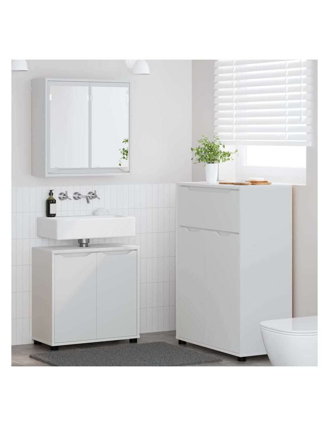 Questo Set di Mobili da Bagno Morden unisce stile e praticità per dare un nuovo look al tuo bagno. Include un armadietto a specchio, un armadietto per il lavandino e uno più alto, perfetto in ogni bagno. Il design moderno e snello, con linee semplici e un tocco minimalista, porta freschezza, rendendolo ideale per interni moderni. Rinnova la tua routine con le sue soluzioni di stoccaggio pensate per la cura personale e per un'organizzazione perfetta.