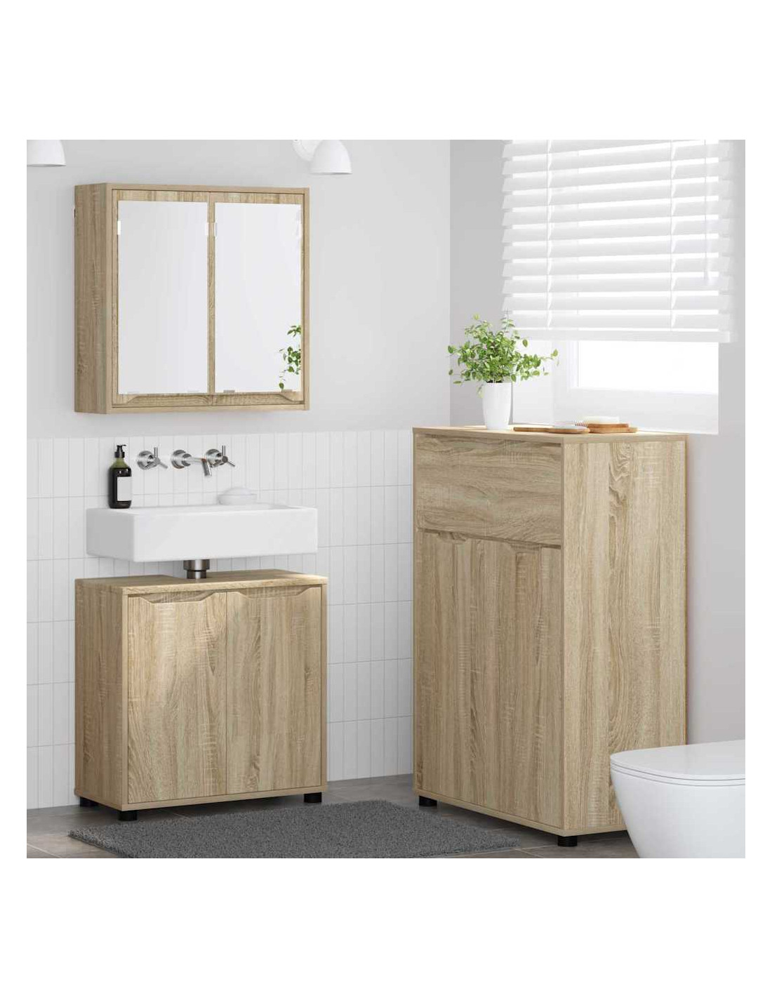 - Materiale in legno ingegnerizzato: Realizzato con legno ingegnerizzato, questo set da bagno ha una superficie liscia resistente a polvere e umidità. Dura nel tempo e si integra bene con qualsiasi stile moderno.