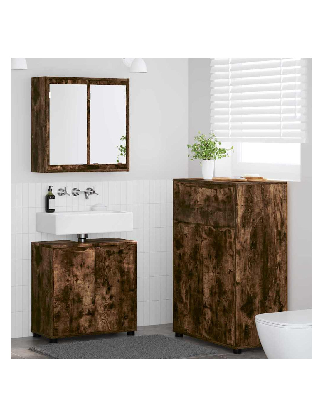 - Materiale in legno ingegnerizzato: Realizzato con legno ingegnerizzato, questo set da bagno ha una superficie liscia resistente a polvere e umidità. Dura nel tempo e si integra bene con qualsiasi stile moderno.
