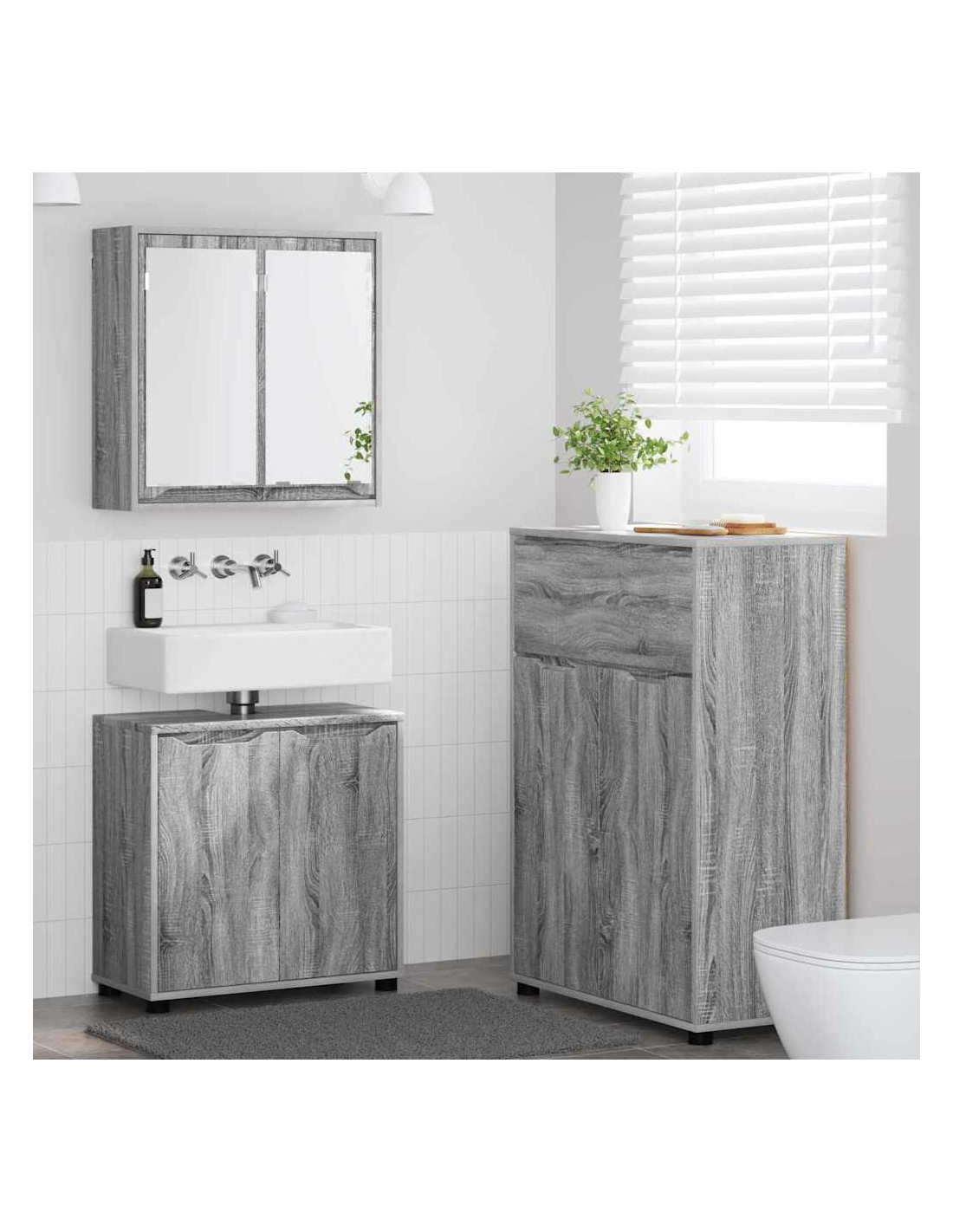 Questo Set di Mobili da Bagno Morden unisce stile e praticità per dare un nuovo look al tuo bagno. Include un armadietto a specchio, un armadietto per il lavandino e uno più alto, perfetto in ogni bagno. Il design moderno e snello, con linee semplici e un tocco minimalista, porta freschezza, rendendolo ideale per interni moderni. Rinnova la tua routine con le sue soluzioni di stoccaggio pensate per la cura personale e per un'organizzazione perfetta.