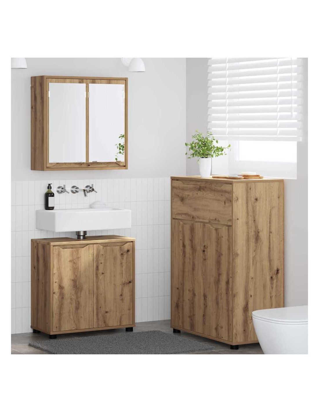 - Materiale in legno ingegnerizzato: Realizzato con legno ingegnerizzato, questo set da bagno ha una superficie liscia resistente a polvere e umidità. Dura nel tempo e si integra bene con qualsiasi stile moderno.