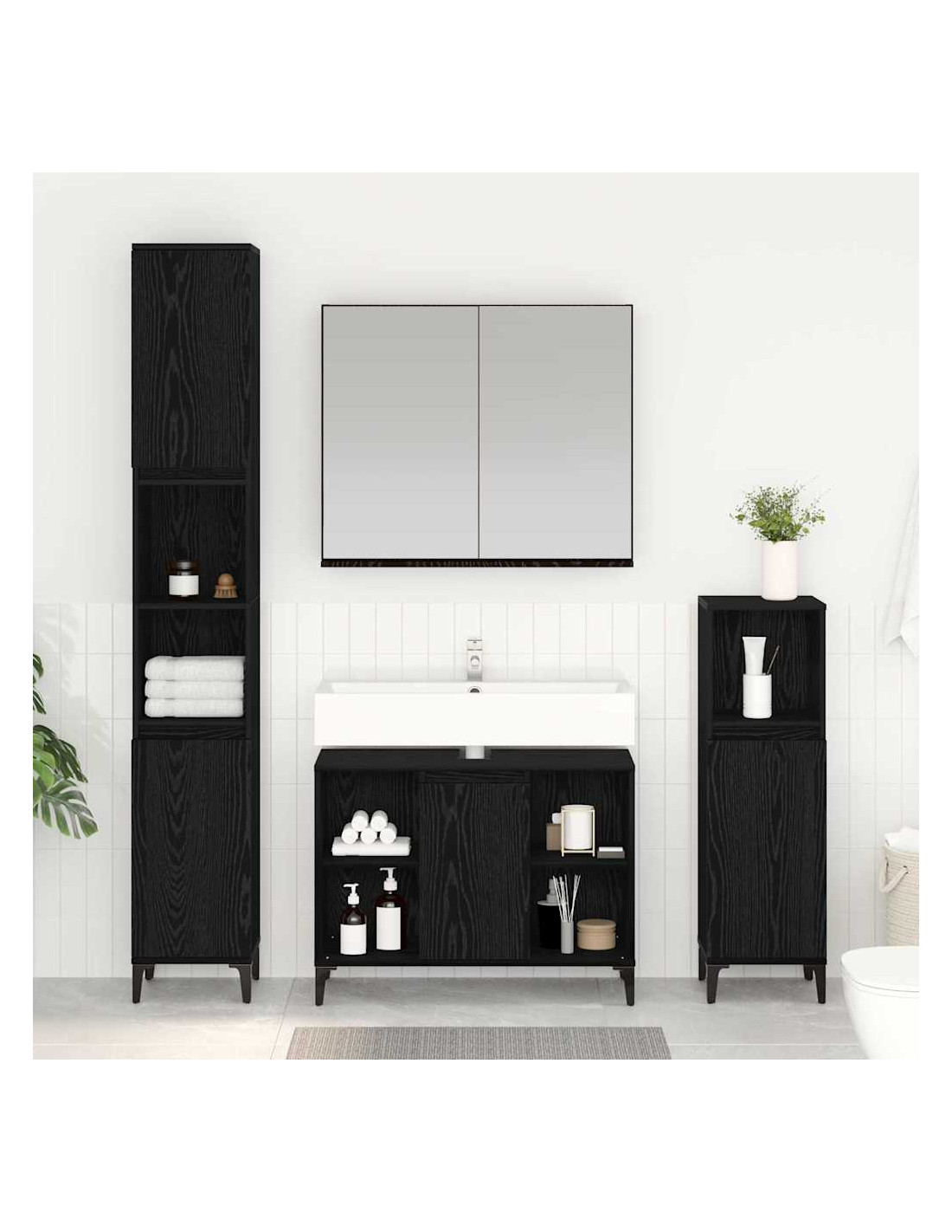Questo set di mobili per il bagno moderno è un esempio perfetto di design contemporaneo, si integra bene in qualunque bagno. Le superfici testurizzate e la finitura opaca regalano un'aria sofisticata e offrono praticità per l'uso quotidiano. È ideale per chi cerca di dare un tocco elegante al proprio bagno, con ampio spazio per riporre tutto in ordine. Perfetto sia per appartamenti che per case più grandi, unisce eleganza e funzionalità. Le linee fluide e il design minimalista esaltano la semplicità e l'utilità tipiche dello stile moderno, rendendolo versatile per ogni bagno.