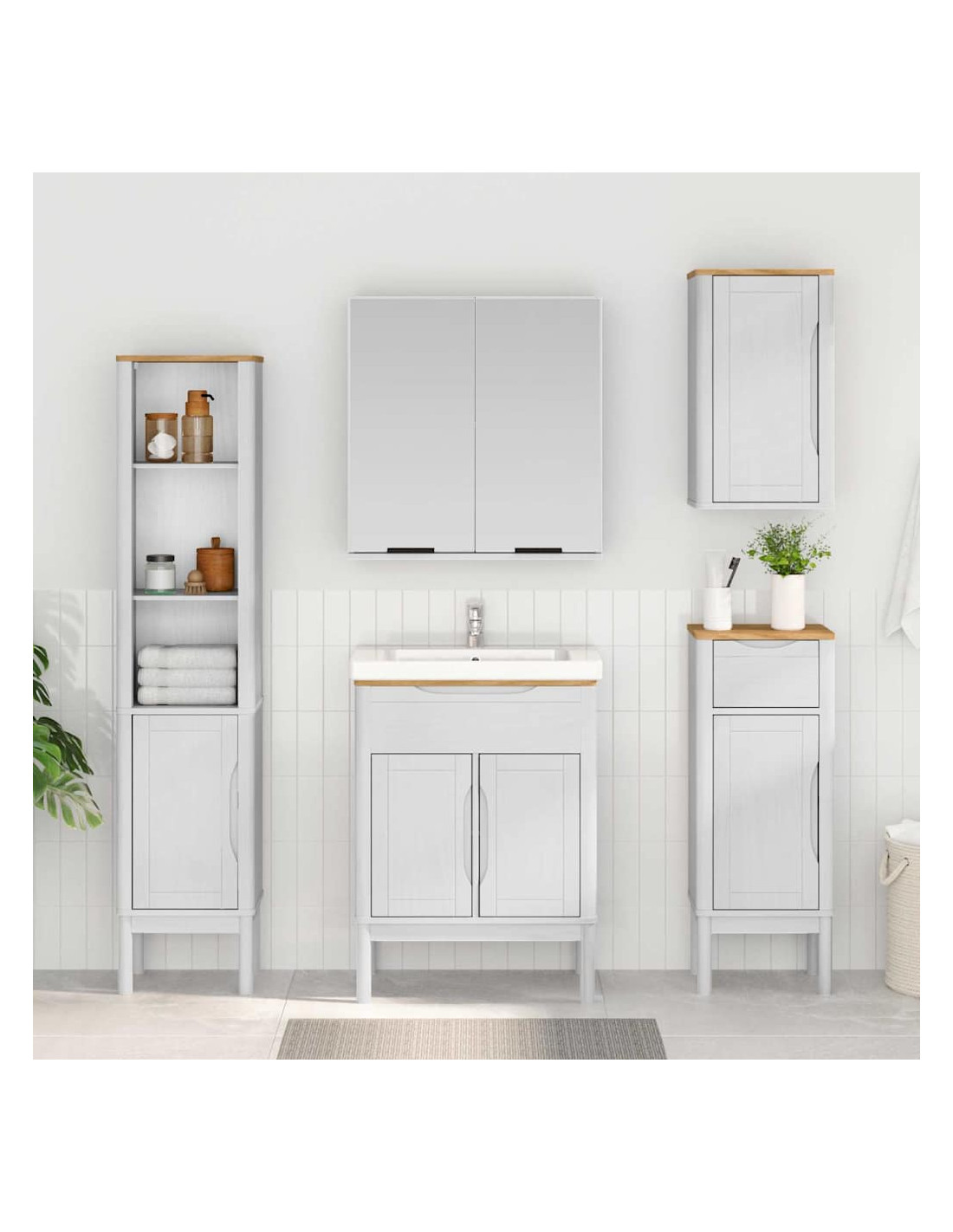 - Legno di Pino di Alta Qualità: L'intero mobile è fatto in legno massello di pino, noto per la sua robustezza. Questo materiale dona una texture calda e naturale, integrandosi bene in vari design. La struttura in legno di pino non solo è durevole ma aggiunge anche un tocco di eleganza al tuo spazio bagno.