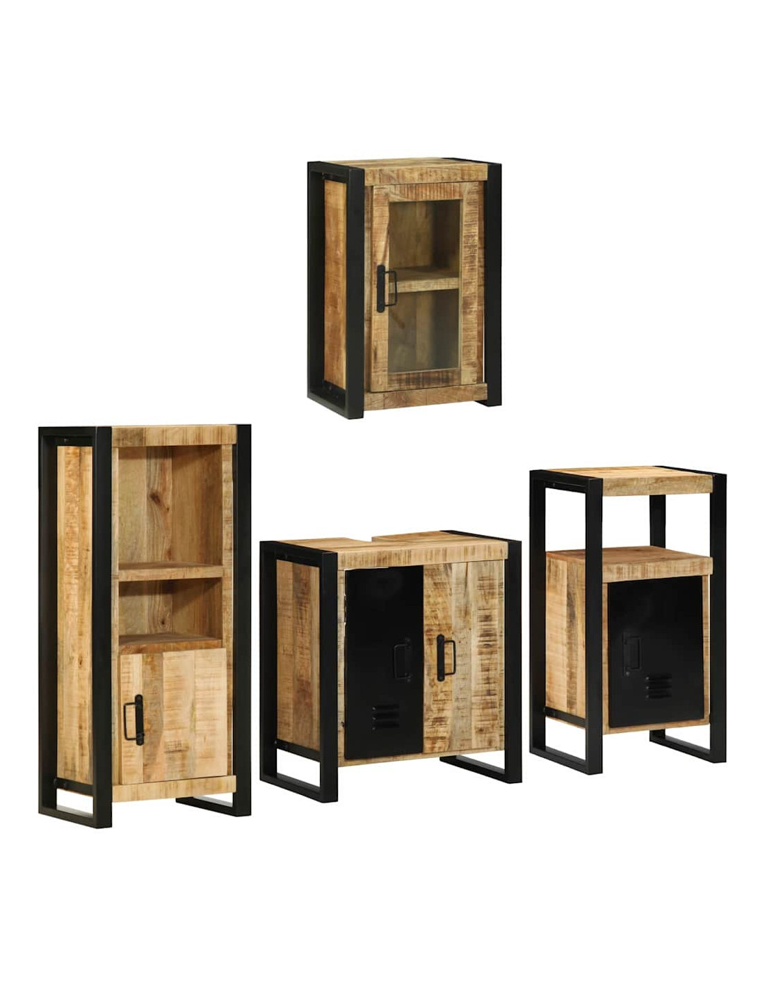 - Componenti pratici: Comprende un mobile lavabo, un mobile da terra, un mobile a parete e una mensola, tutti progettati per riporre facilmente le cose del bagno. Questo set offre tanto spazio senza rinunciare all'ordine e alla praticità.