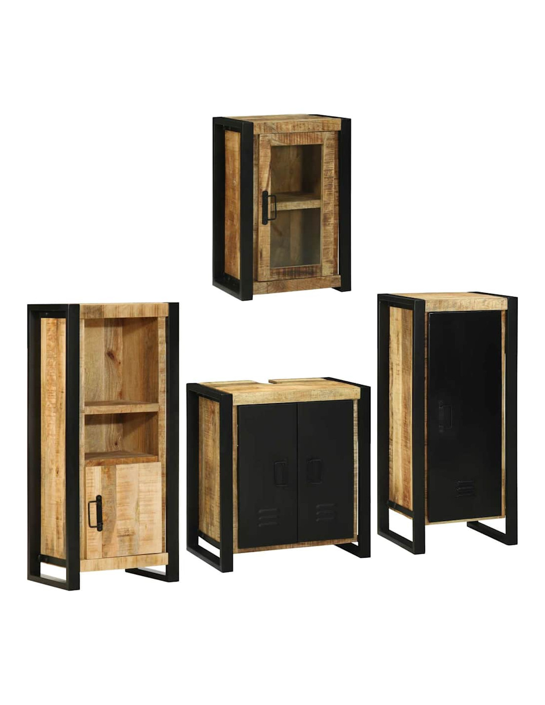 - Componenti inclusi: Il set comprende un mobile lavabo, un armadietto da bagno, un armadietto da parete e una mensola, tutti pensati per offrirti ampio spazio e organizzazione. Ogni pezzo è progettato per rendere il tuo spazio facilmente accessibile.