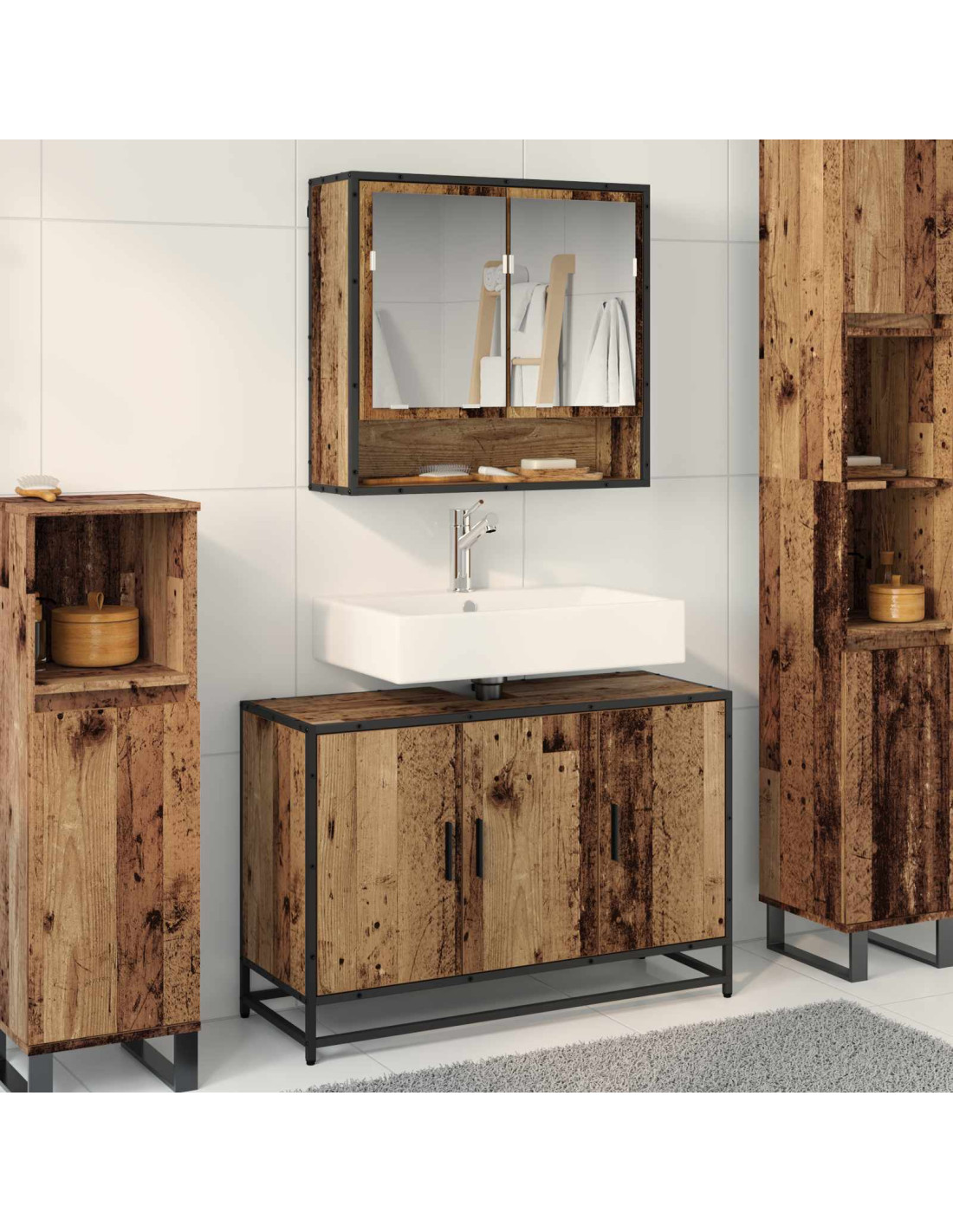 - Componenti funzionali: Include un ampio armadietto con specchio e un armadietto per lavabo pensati per le esigenze di oggi. Le porte a filo e gli scaffali ampi soddisfano le diverse necessità di stoccaggio, mentre il design a parete massimizza lo spazio, offrendo apertura ed efficienza anche nei bagni più piccoli.
