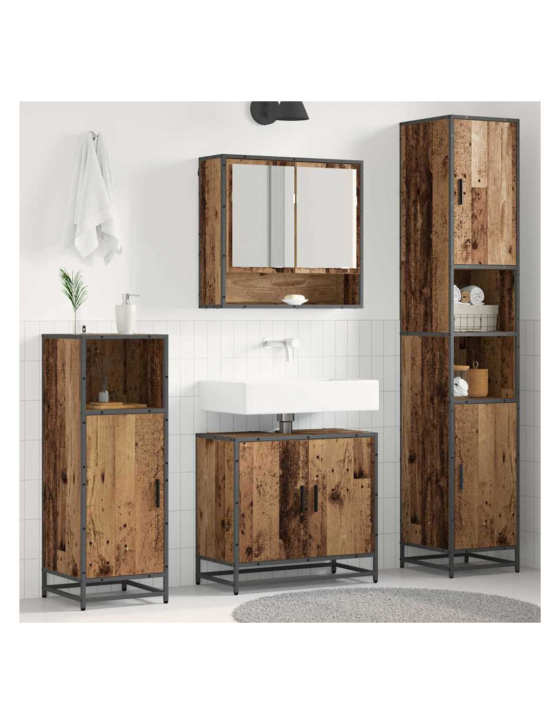 - Materiali: Questo set di mobili da bagno in legno ingegnerizzato di alta qualità promette resistenza e stile. Il legno è robusto e ideale per ambienti umidi, garantendo che l'estetica si mantenga nel tempo. Resiste all'umidità, rendendolo un'opzione smart per chi cerca stile e sostanza.