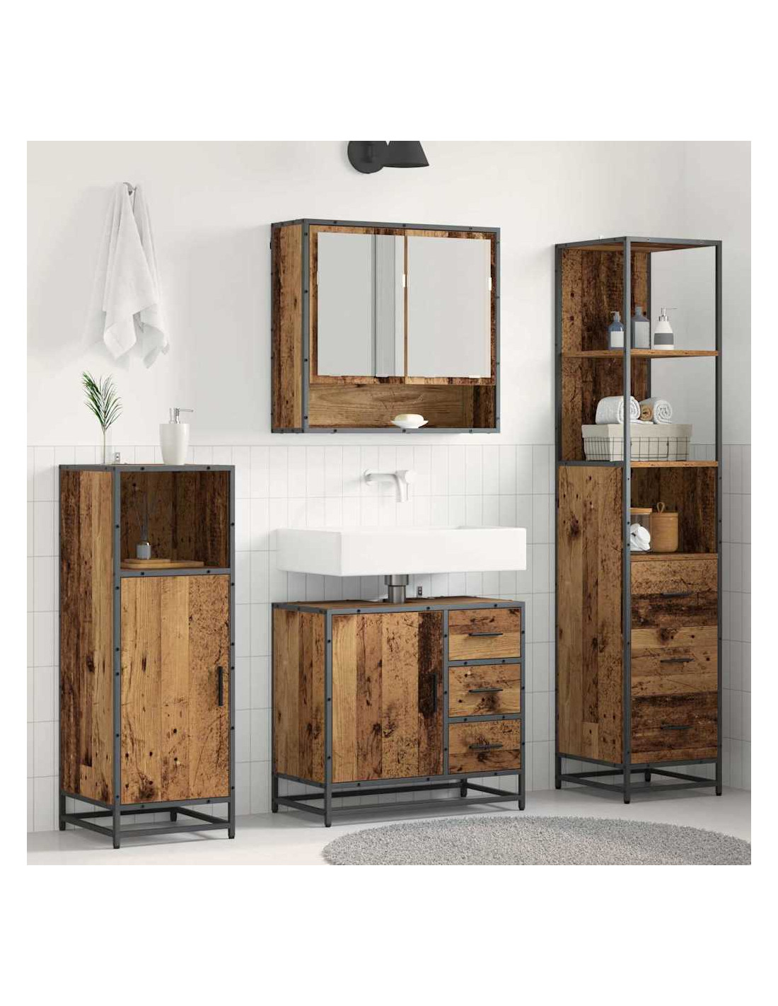 - Componenti Inclusi Questo set viene con un mobile specchio, un mobile per lavabo e un armadietto extra. Ogni pezzo si aiuta a vicenda, offrendo tante soluzioni di stoccaggio e migliorando la funzionalità del bagno. Il mobile specchio non solo tiene in ordine, ma aggiunge anche un tocco di eleganza.