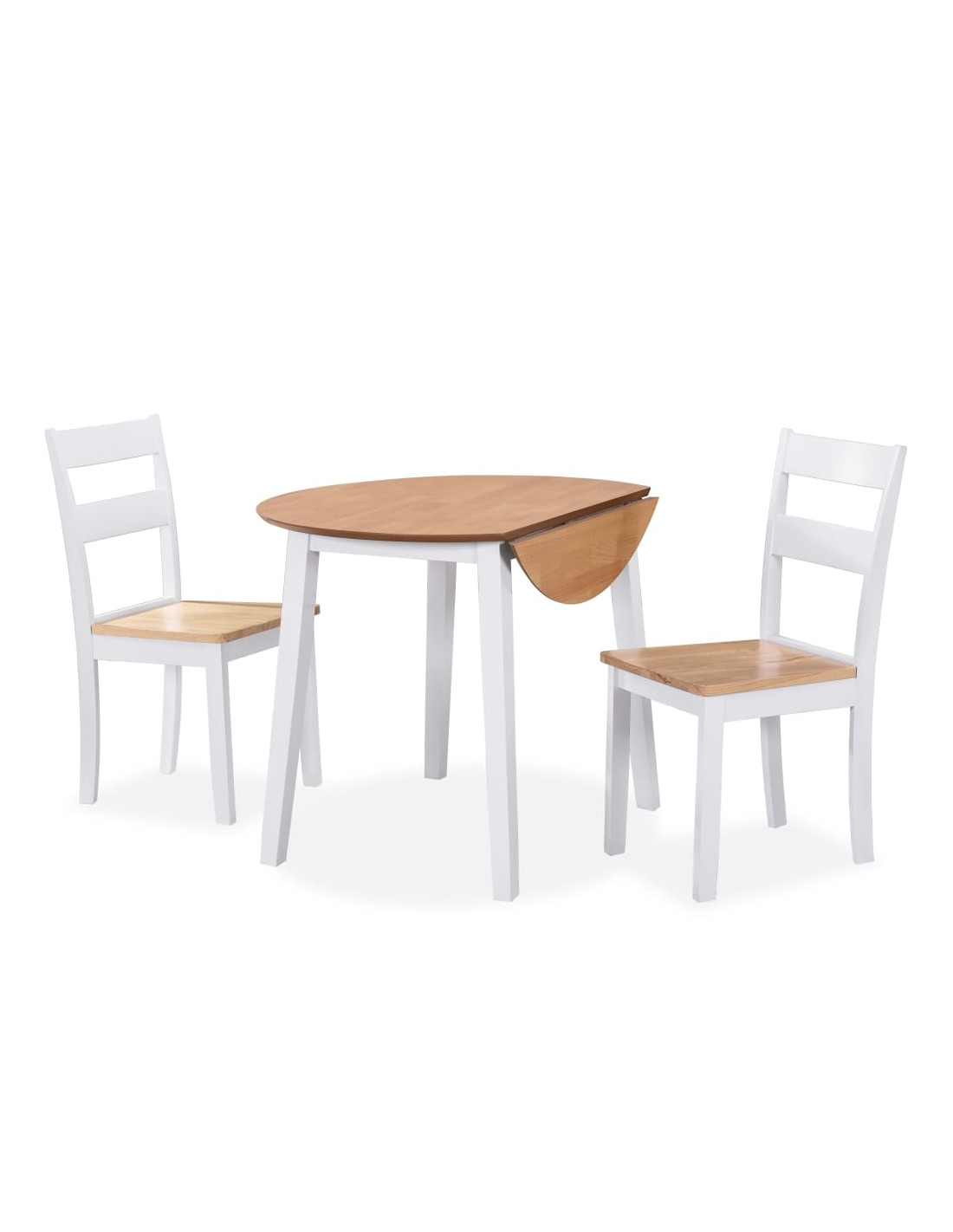 Questo set ha un design classico in legno sofisticato naturale di colore bianco. L'MDF fa sì che il piano del tavolo sia più facile da pulire, mentre il legno solido di hevea conferisce maggiore stabilità alle gambe del telaio. Al legno è stata data una finitura ad olio per un colore ricco e caldo. I lati del tavolo a ribalta possono essere ripiegati e le sedie possono essere riposte sotto il tavolo per risparmiare spazio quando non sono in uso.