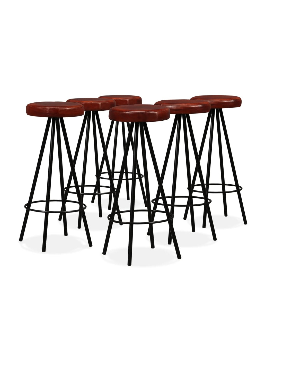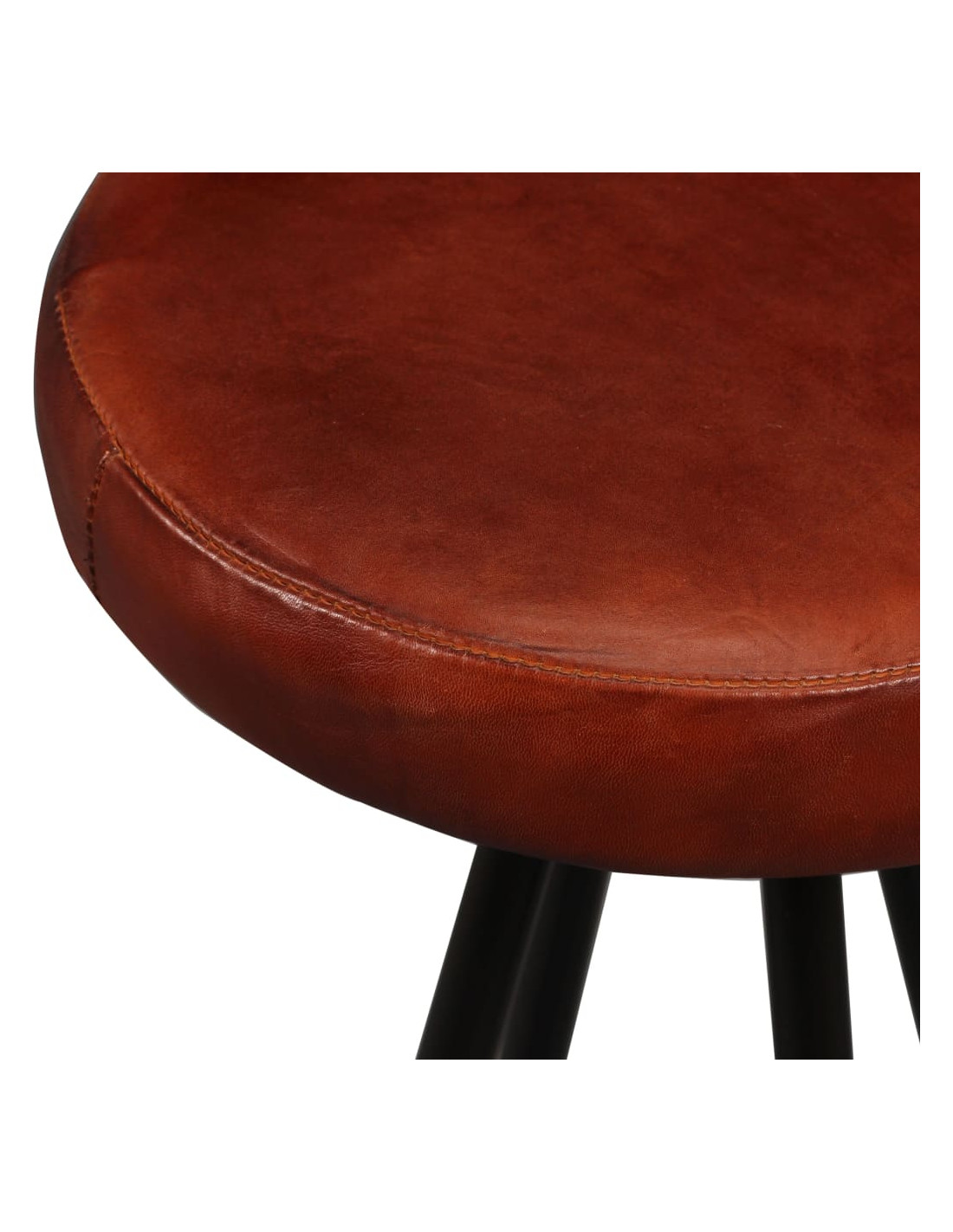 Gli sgabelli da bar sono rivestiti in vera pelle morbida al tatto, che rende gli sgabelli estremamente resistenti e confortevoli. Le robuste gambe in acciaio rendono gli sgabelli molto robusti e ne sottolineano lo spettacolare stile industriale.