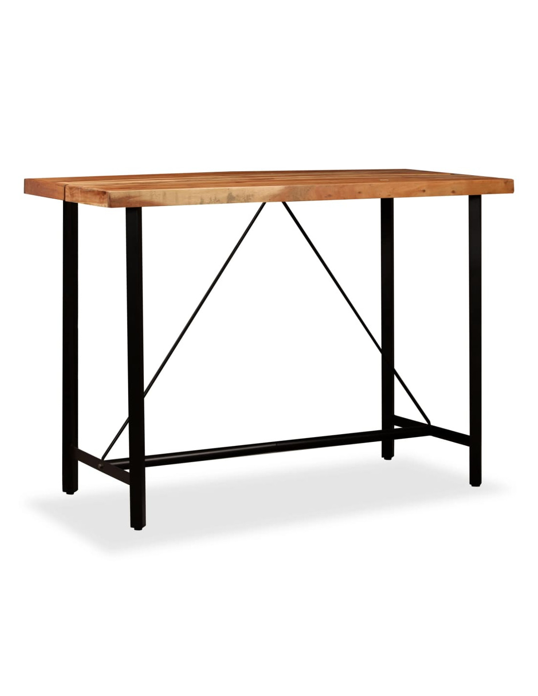 Il tavolo da bar è realizzato in legno massello di acacia, durevole, stabile e facile da pulire. La lavorazione artigianale e le bellissime venature del legno rendono ogni pezzo unico e leggermente diverso dagli altri. Le robuste gambe in acciaio rendono il tavolo da bar molto robusto e durevole e ne sottolineano lo spettacolare stile industriale. Nota importante: Le venature del legno possono variare da pezzo a pezzo, rendendo ogni pezzo unico. La consegna è casuale, garantendo l'esclusività e l'individualità del prodotto.