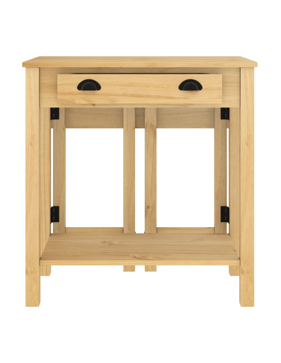 - Materiale: Legno massello di pino con finitura cerata ambra, legno multistrato