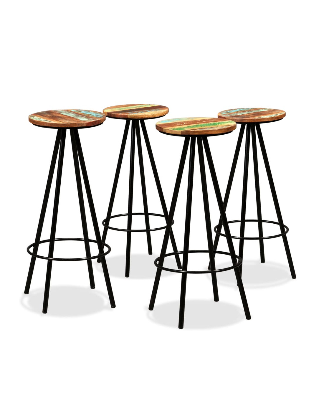 Gli sgabelli da bar sono realizzati in legno massello di recupero, il che significa che hanno le caratteristiche di legni diversi il teak, il mango, l'acacia, ecc. Il legno di recupero è solido, stabile, durevole e bello. I segni di usura conferiscono a ogni pezzo un aspetto unico e la struttura in acciaio si aggiunge allo spettacolare stile industriale. Ogni fase del processo di costruzione viene effettuata con la massima cura, che si tratti di ricombinazione, lucidatura, pittura o laccatura.