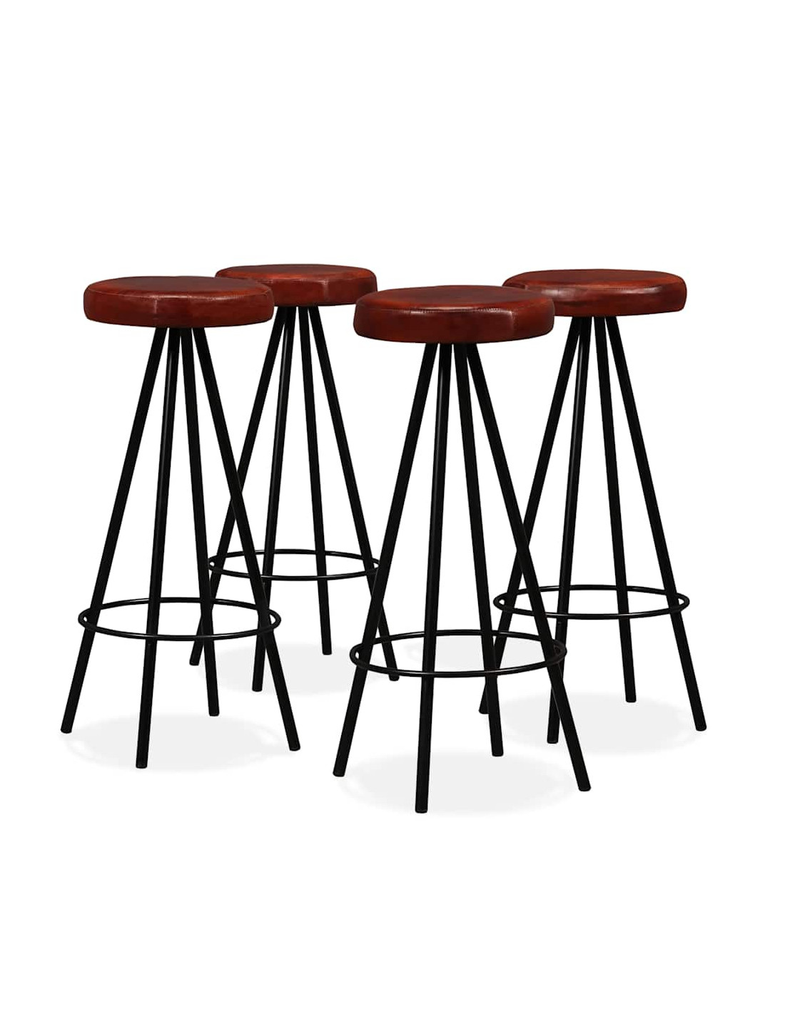 Gli sgabelli da bar sono rivestiti in vera pelle morbida al tatto, che rende gli sgabelli estremamente resistenti e confortevoli. Le robuste gambe in acciaio rendono gli sgabelli molto robusti e ne sottolineano lo spettacolare stile industriale.