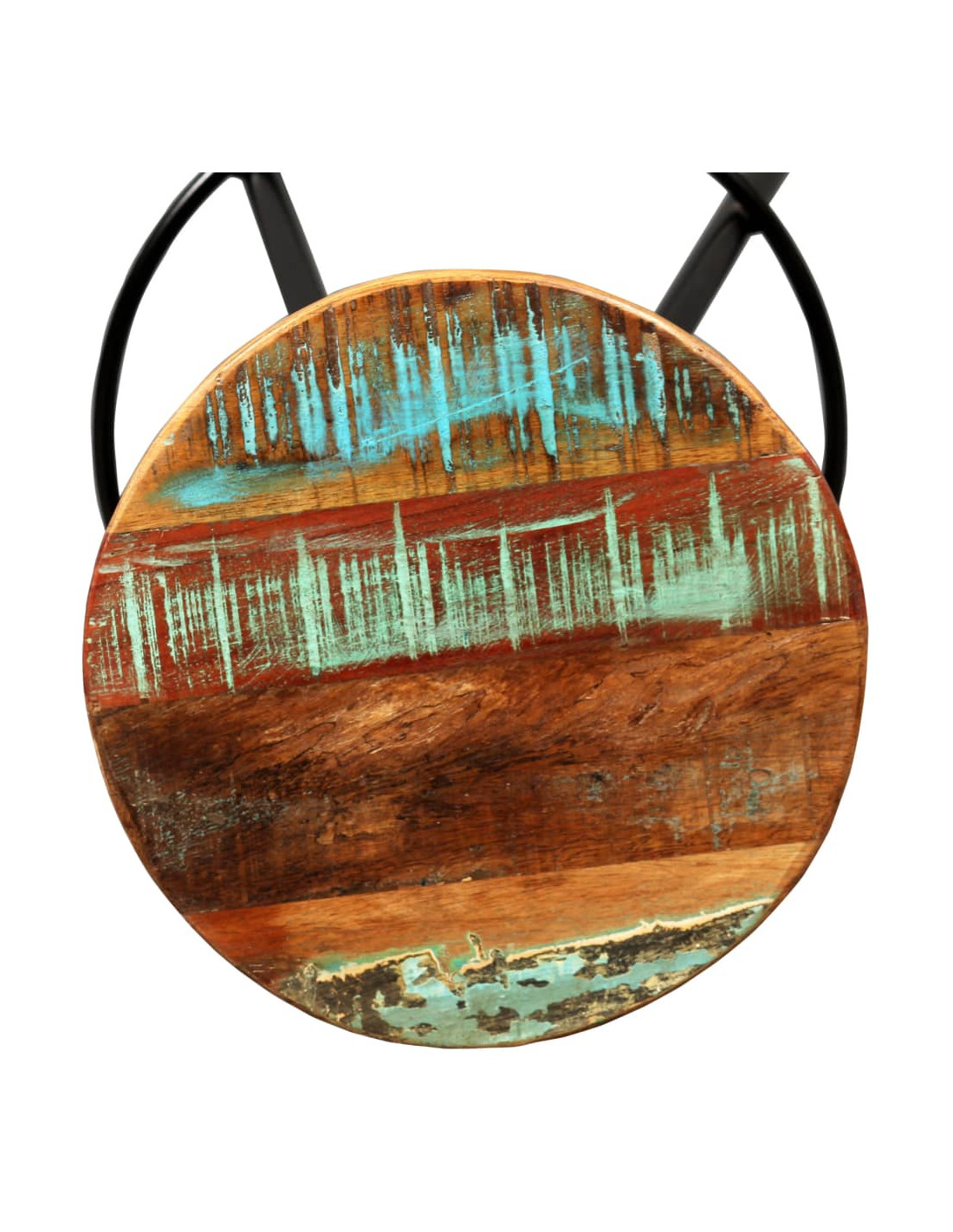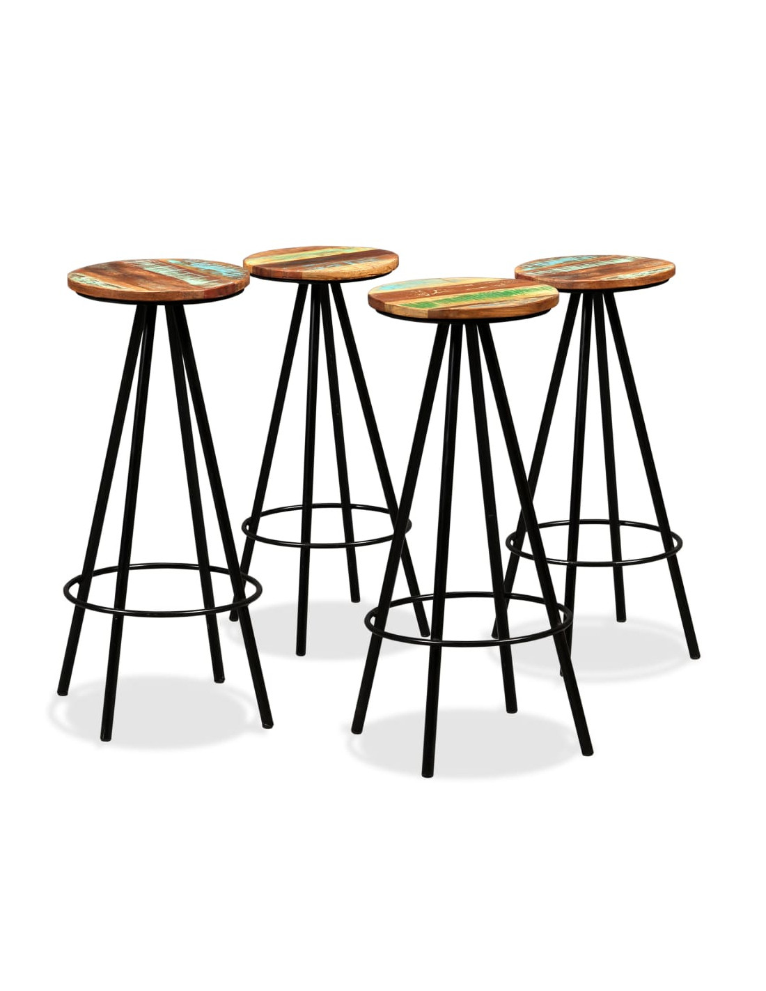 Gli sgabelli da bar sono realizzati in legno massello di recupero, materiale che presenta le caratteristiche di legni diversi come lo sheesham, il mogano, il teak, il mango, l'acacia, etc. Il legno di recupero è robusto, stabile, resistente e dall'aspetto accattivante. I segni di usura conferiscono a ogni pezzo un carattere unico e le gambe in acciaio ne sottolineano lo spettacolare stile industriale. Ogni fase del processo di costruzione, dall'assemblaggio alla lucidatura, fino alla verniciatura e alla laccatura viene eseguita con la massima cura.
