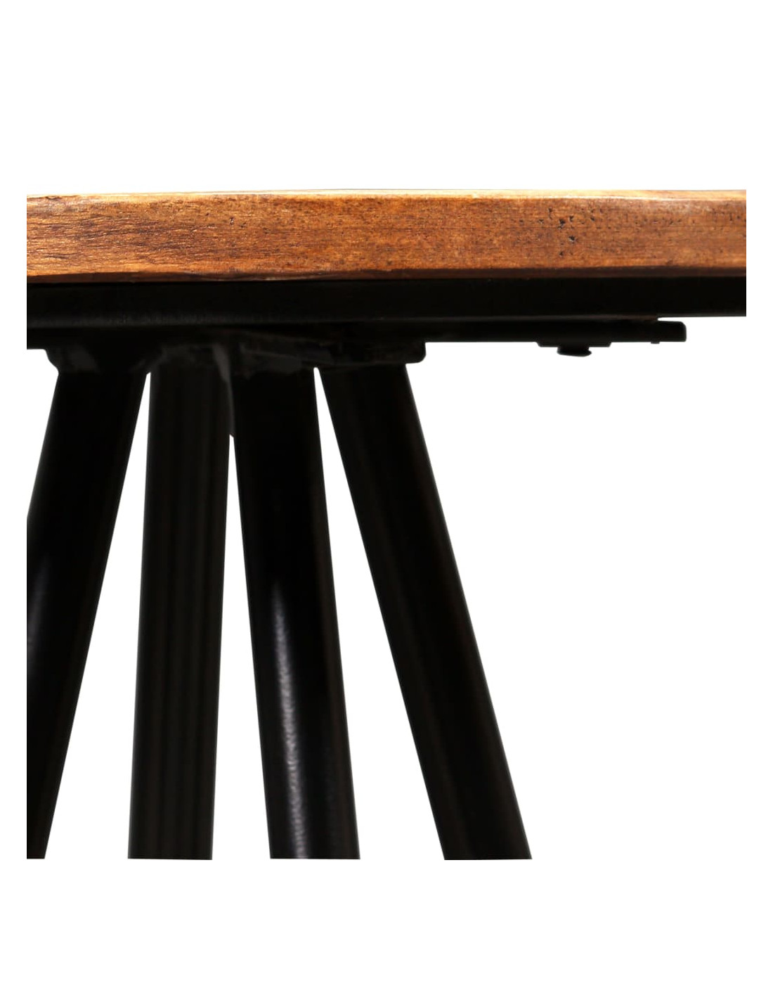 Il tavolo da bar è lavorato in legno massello di acacia che è durevole, stabile e facile da pulire. È interamente realizzato a mano e le bellissime venature del legno rendono ogni mobile unico e leggermente diverso dagli altri. Le gambe robuste in acciaio rendono il tavolo da bar molto robusto e resistente e si aggiungono al suo spettacolare stile industriale.