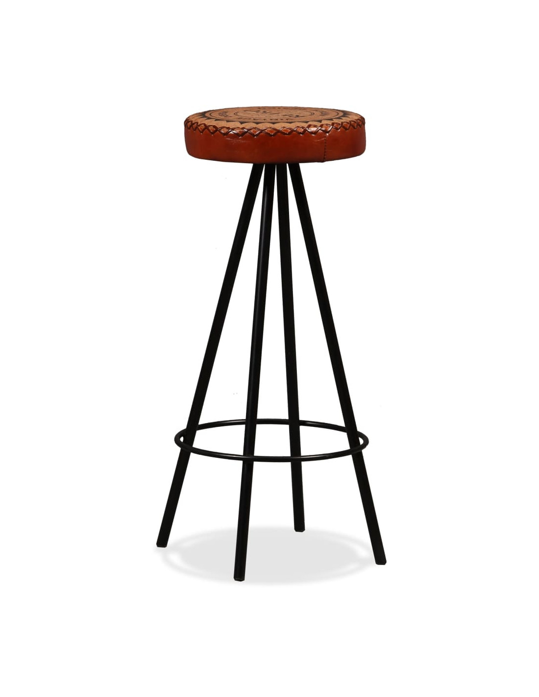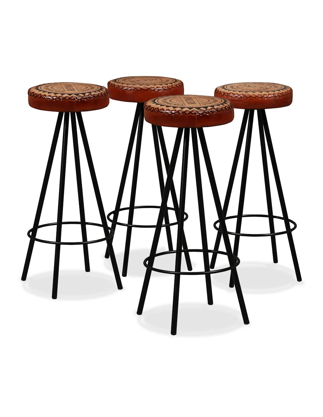 Gli sgabelli da bar sono rivestiti in vera pelle morbida al tatto e tela, che rende gli sgabelli estremamente resistenti e confortevoli. Le robuste gambe in acciaio rendono gli sgabelli molto robusti e ne sottolineano lo spettacolare stile industriale.