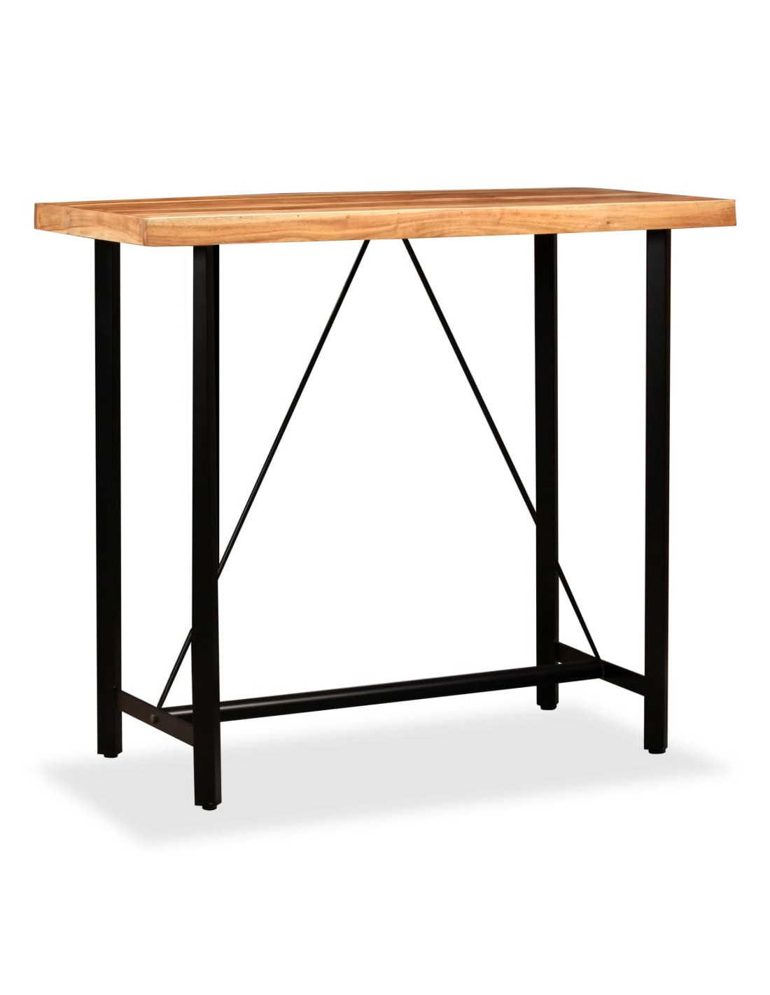 Il tavolo da bar è realizzato in legno massello di acacia, durevole, stabile e facile da pulire. La lavorazione artigianale e le bellissime venature del legno rendono ogni pezzo unico e leggermente diverso dagli altri. Le robuste gambe in acciaio rendono il tavolo da bar molto robusto e durevole e ne sottolineano lo spettacolare stile industriale. Nota importante: Le venature del legno possono variare da pezzo a pezzo, rendendo ogni pezzo unico. La consegna è casuale, garantendo l'esclusività e l'individualità del prodotto.